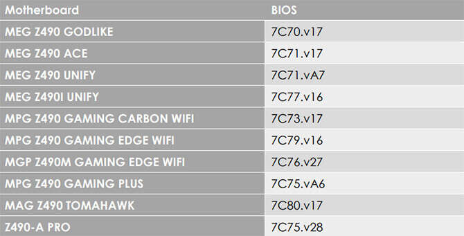 MSI w przeciwieństwie do Asusa w pełni naszykował płyty Z490 na PCI-E 4.0. Każdy z modeli po aktualizacji BIOS w pełni poradzi sobie z nowym sprzętem, który wykorzysta potencjał nowej technologii.