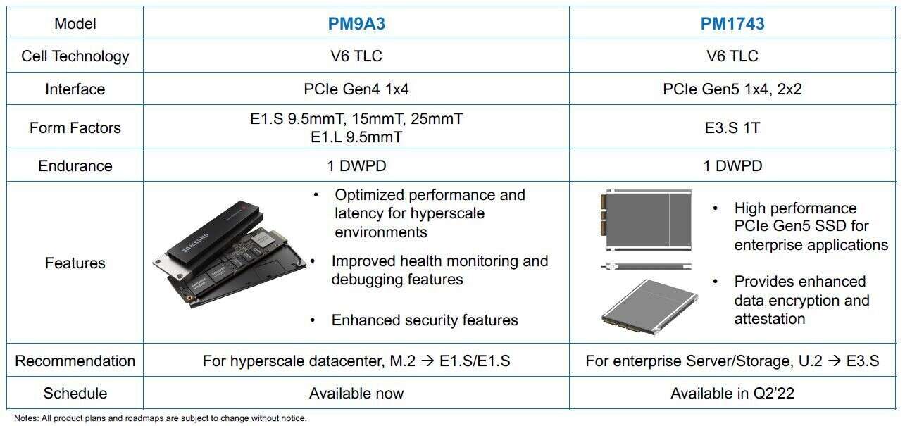 Zacznijmy może od tego, że PM1743, jako dysk SSD PCIe 5.0 Samsunga będzie przeznaczony wyłącznie na rynek profesjonalny (zastosowanie serwerowe, w centrach danych) i zadebiutuje w drugim kwartale 2022 roku. Premiera jest więc odległa, ale już teraz Samsung zdradził, że ten nośnik wykorzysta interfejs PCIe 5.0 x4, który w teorii pozwoli na maksymalne prędkości 15,6 GB/s.