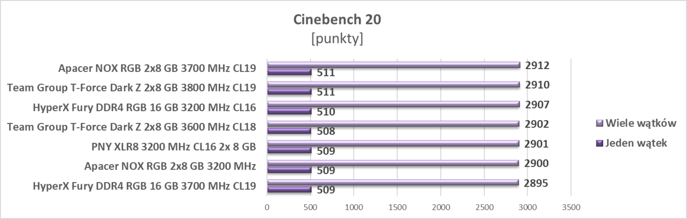 Podsumowanie testu PNY XLR8 3200 MHz CL16 2x 8 GB
