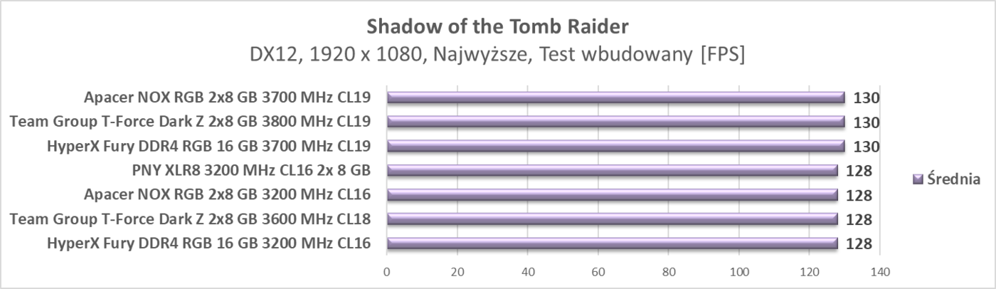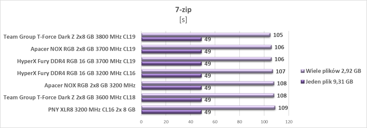Wydajność pamięci jest zgodna z oczekiwaniem – na poziomie innych konstrukcji 3200 MHz CL16. Nie ma więc tutaj żadnych zaskoczeń ani dziwnych wyników.