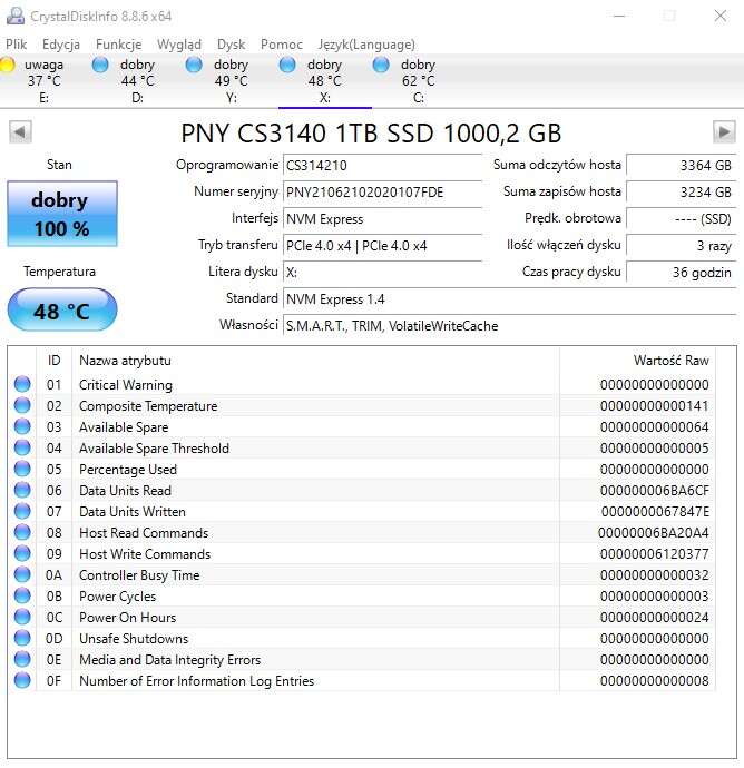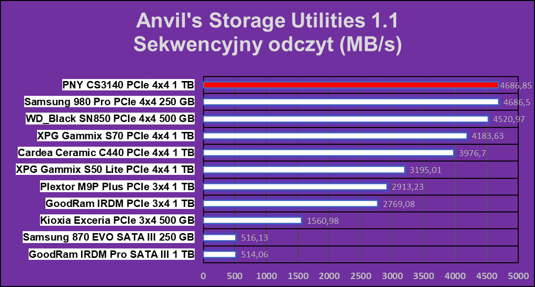 Podsumowanie testu dysku PNY XLR8 CS3140