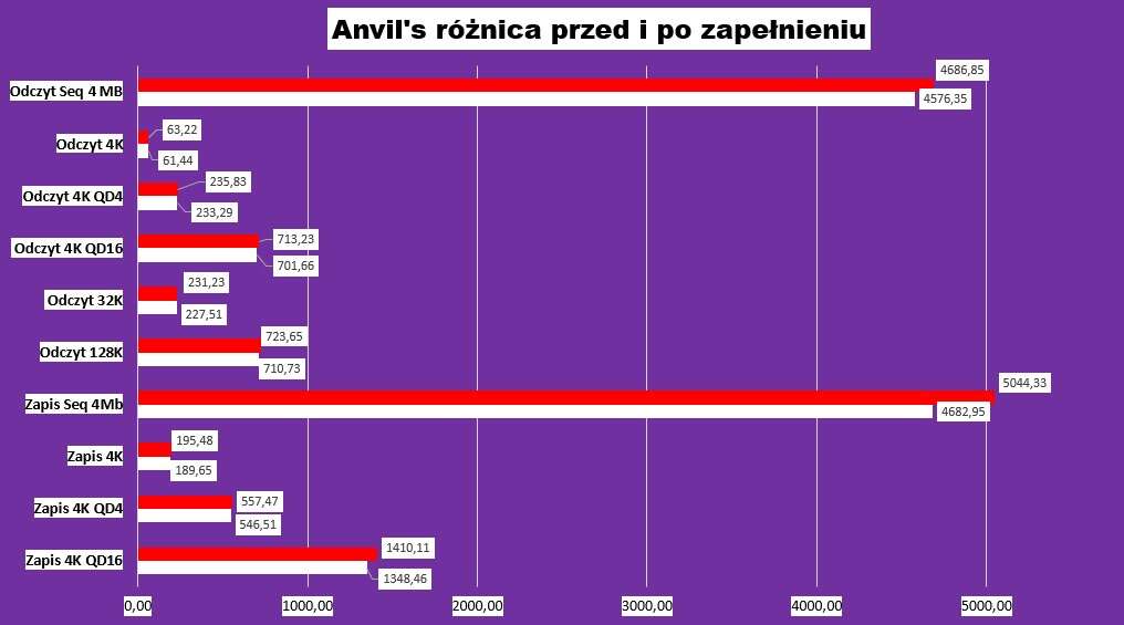 Ten z kolei test ukazuje wydajność dysku w najczęściej przeprowadzanych przez nas operacjach. Zwłaszcza kiedy na nośniku odpalamy system operacyjny i programy w tle. Tutaj zdecydowanie warto posłużyć się cyferkami, bo do testu wybrałem dwa najcięższe zadania z naszego asortymentu.