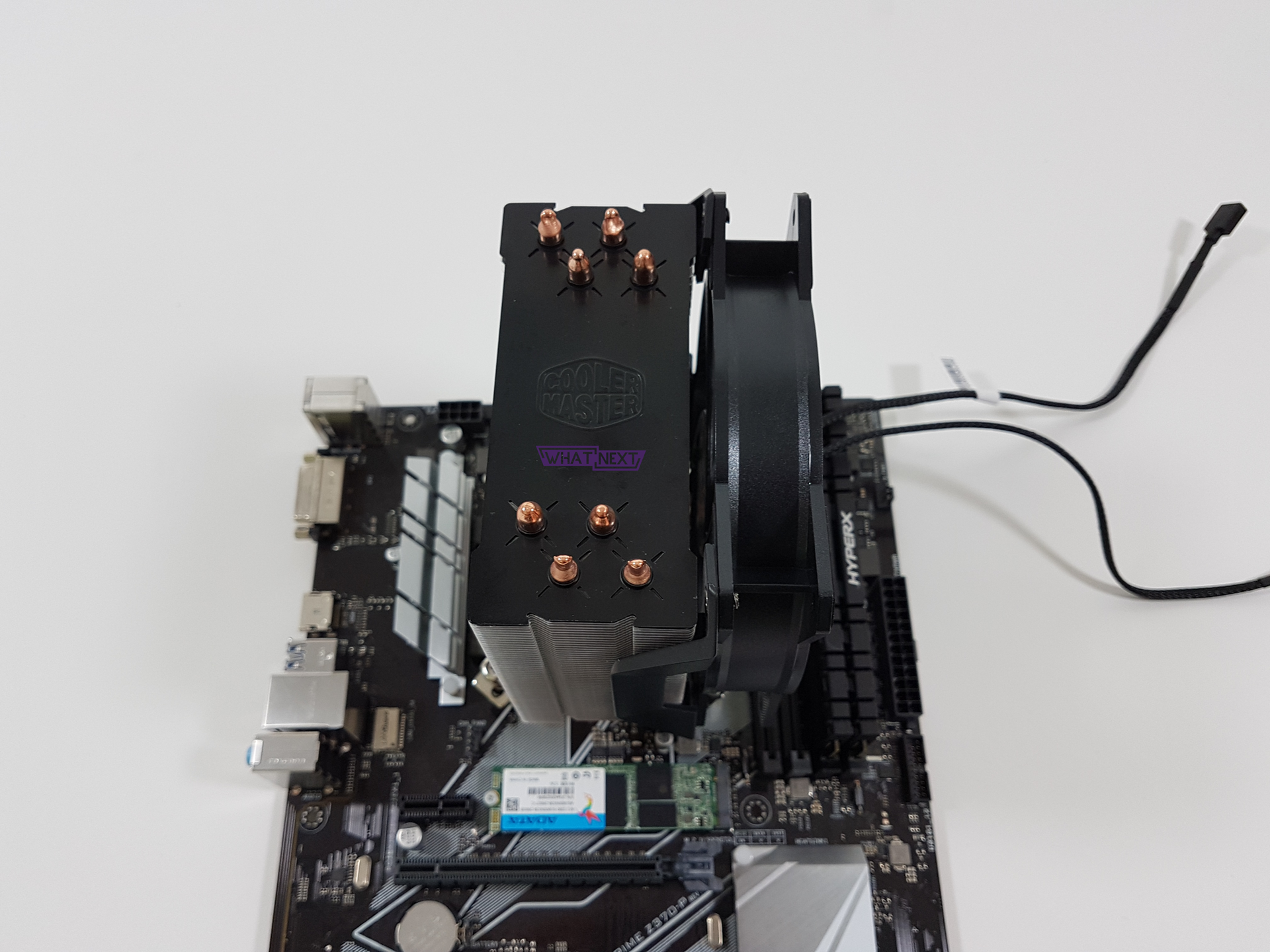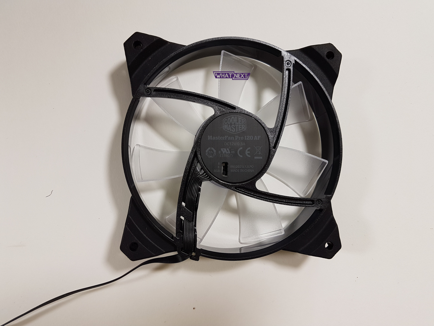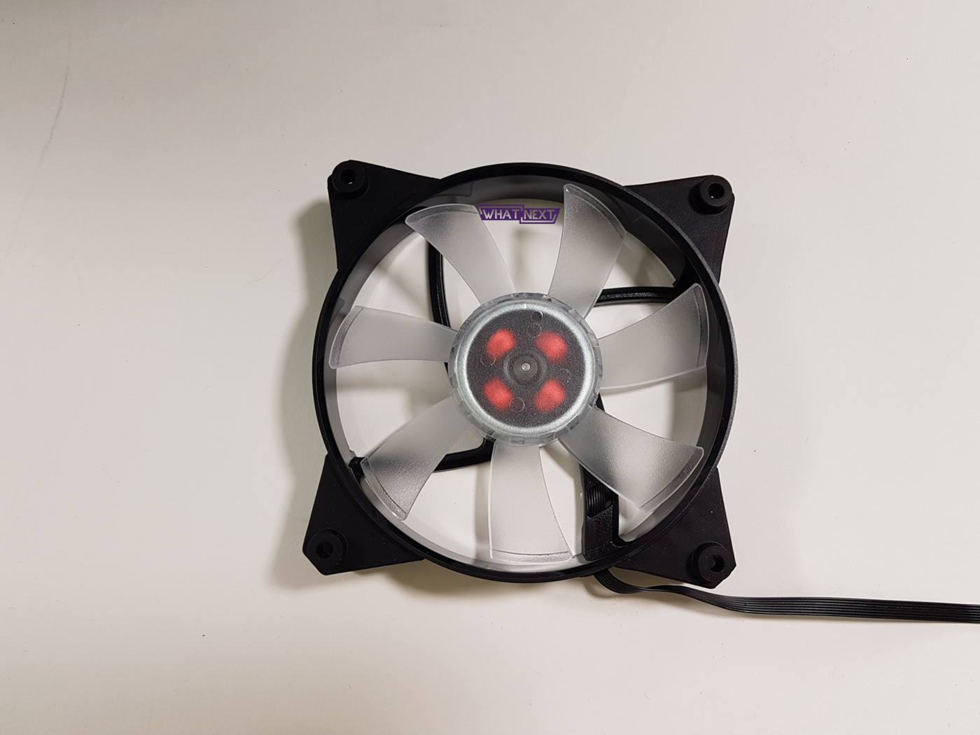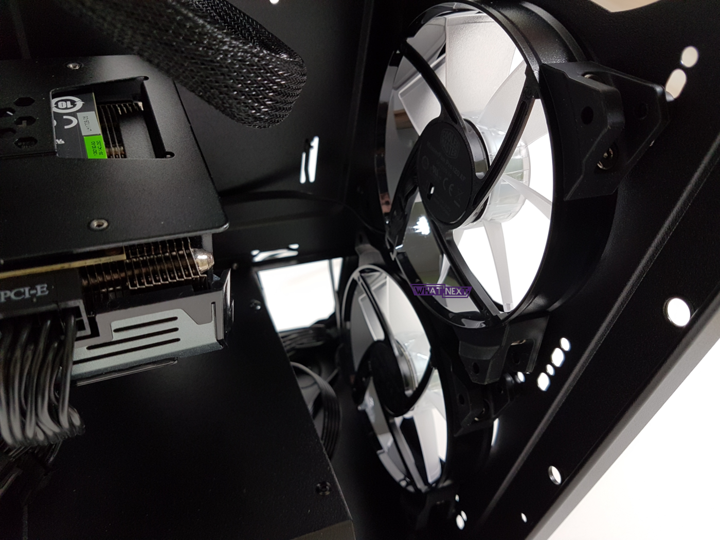 - Z tyłu zamontowany był wentylator dołączony do obudowy, reszta wentylatorów to Cooler Master MasterAir 120 Air Flow