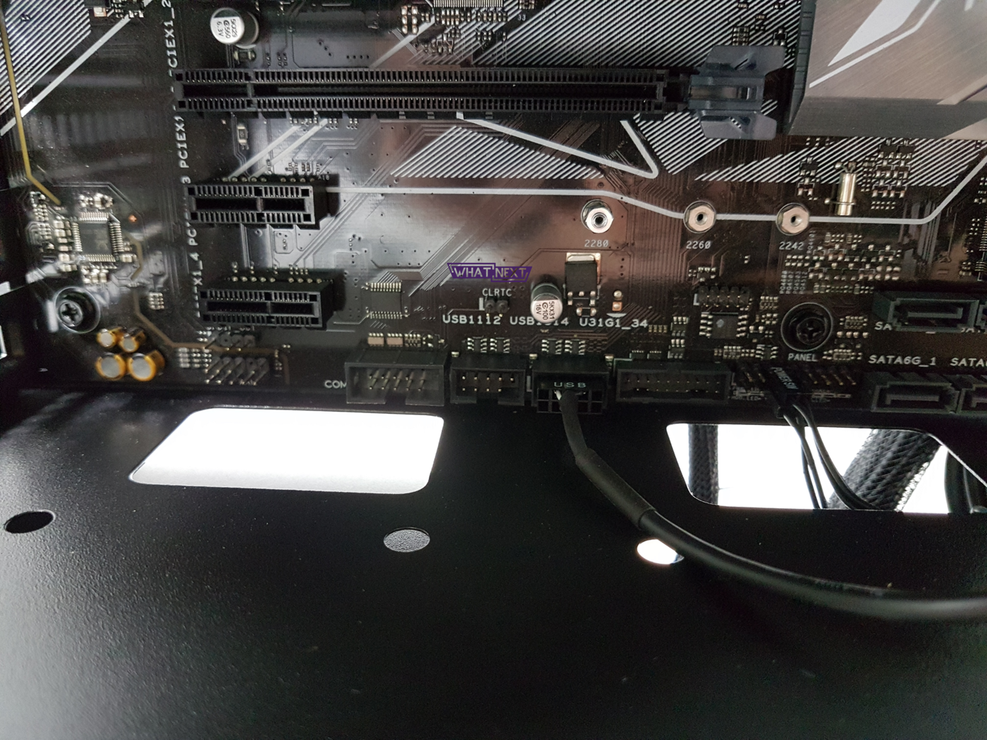 Na początku trzeba przygotować backplate. Jest ono opisane z jednej strony Intel, z drugiej AMD więc łatwo można rozpoznać gdzie wkładać śruby. Po włożeniu śrub trzeba je zabezpieczyć plastikowymi nakładkami. W przypadku Intela są trzy miejsca – przy platformie LGA1151 należy zabezpieczyć śruby na środkowym miejscu.