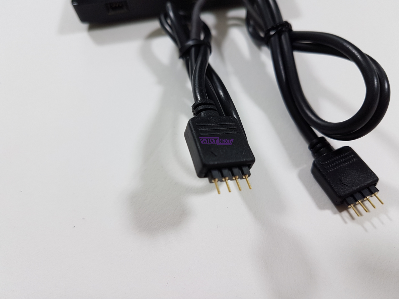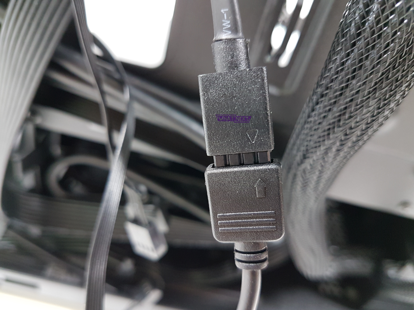 W przypadku wentylatorów MasterAir znajdziecie w zestawie kontroler podświetlenia wraz z kablami. Kable należy podłączyć do kontrolera, następnie należy podłączyć specjalne przejściówki oraz podłączyć do nich złącze od wentylatora (w tym przypadku także tego od chłodzenia procesora). Należy tutaj pamiętać, aby strzałki do siebie pasowały. Do kontrolera podłączanie także zasilający kabel SATA oraz wyjście USB, które podłączacie do płyty głównej. Dzięki niemu będziecie mogli sterować podświetleniem za pomocą oprogramowania Cooler Mastera.