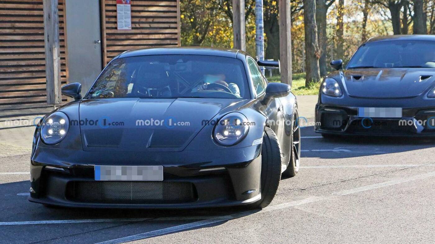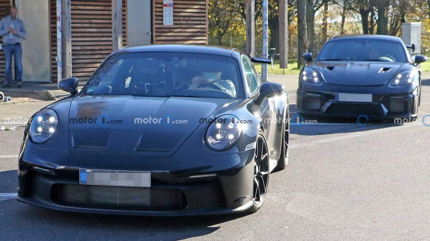Zarówno nowe Porsche 911 GT3, jak i Cayman GT4 RS występują tutaj z minimalnymi maskowaniami na znakach szczególnych związanych z firmą. Pozostałe elementy nadwozia są jednak pozbawione jakiegokolwiek kamuflażu, co wskazuje na rychłą premierę. Dodatkowo Porsche postarało się o zasłonięcie m.in. zagłówków siedzeń GT3.