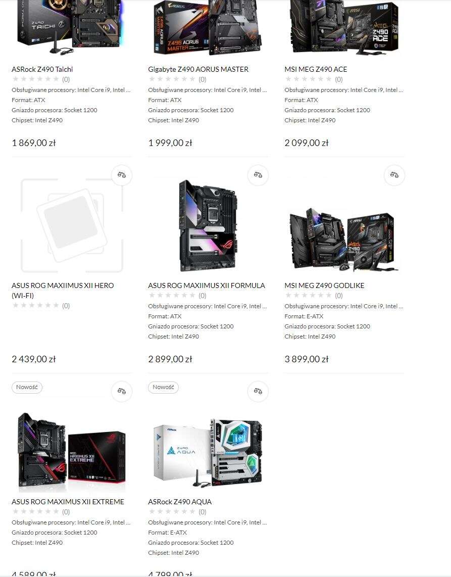 Płyty pojawiły się między innymi w sklepie X-Kom. Cena najtańszego modelu (Z490M) wynosi 639 zł. Tak naprawdę jednak pierwszy sensowny model, który zapewne zagości w wielu komputerach, kosztuje 829 zł (ASRock Z490 Pro4).