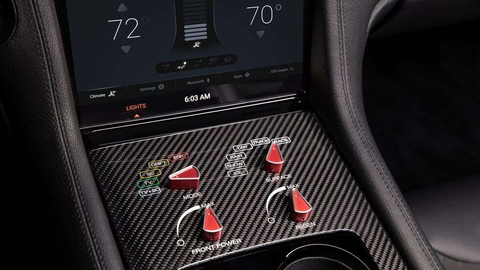 Co ciekawe, wykorzystując technologię wektorowania momentu opracowaną na Nurburgring, samochód jest w stanie regulować moment obrotowy każdego koła niezależnie ponad 1000 razy na sekundę. Akumulator zapadł się oczywiście w podwozie i ma pojemność 90 kWh, wspierając przy tym ładowanie 15 kW.