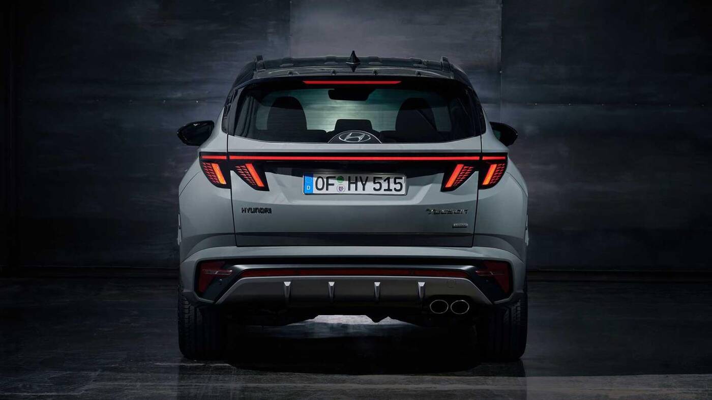 Poza zawieszeniem, Tucson N Line 2021 ma nieco bardziej agresywny wygląd dzięki mocniejszemu zestawowi karoserii, podwójnym wydechom i 19-calowym felgom. Hyundai wprowadził również pewne zmiany we wnętrzu, gdzie znajdują się przednie fotele z oznaczeniem N z większym podparciem bocznym i czerwonymi szwami obecnymi w całej kabinie. Jest też czarna podsufitka i błyszczące czarne wykończenie na niektórych powierzchniach, a metalowe pedały, podnóżek i progi dopełniają całość.