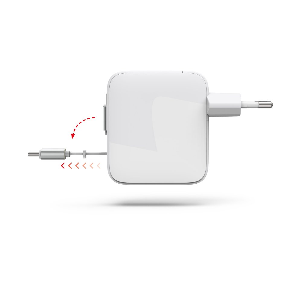 Nigdy więcej gorączkowego szukania kabla do ładowania, gubienia go lub upychania na wyjazd na siłę w wąskich zakamarkach plecaka. Niemiecki producent przedstawia poręczną, kompaktową ładowarkę GaN o mocy 65 W ze złączem USB-C, Power Delivery i Qualcomm Quick Charge, która naładuje każdy telefon, ale też laptop. Uwagę zwraca wbudowany w nią i automatycznie zwijany do wnętrza obudowy kabel. W ten sposób możemy zasilać dwa sprzęty naraz.