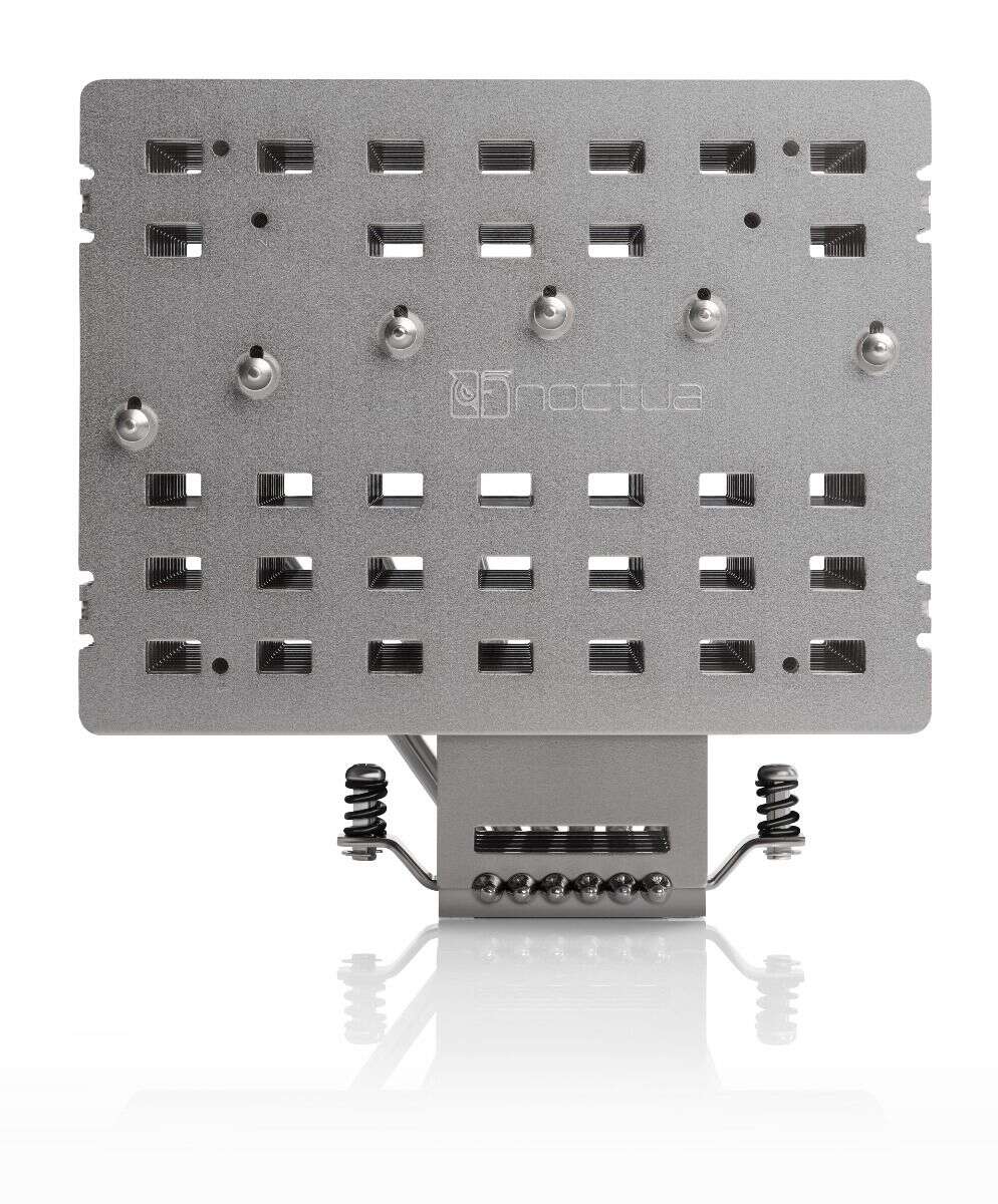 Samo w sobie chłodzenie Noctua NH-P1 nie jest jakimś tam pasywnym coolerem, a owocem wielu lat pracy inżynierów firmy, którzy chcieli odejść możliwie najdalej od zastosowania zwyczajnego wielkiego radiatora. Stąd wyjątkowa konstrukcja, obejmująca stópkę z sześcioma ciekawie rozłożonymi ciepłowodami, które transportują ciepło z procesora prosto do wielkiego aluminiowego bloku o nie tyle gęsto ułożonych, co grubych płytkach z prostokątnymi otworami.