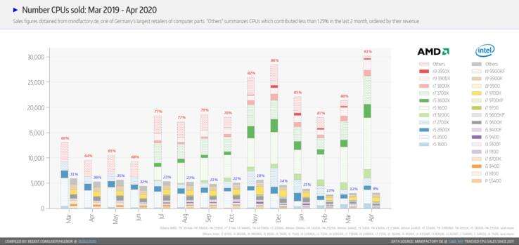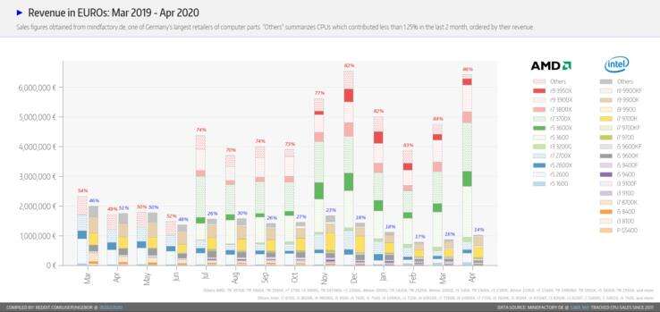 Opublikowane zostały nowe statystyki sprzedaży ze sklepu Mindfactory. Okazuje się, że procesory AMD bardzo mocno zdominowały sprzedaż.