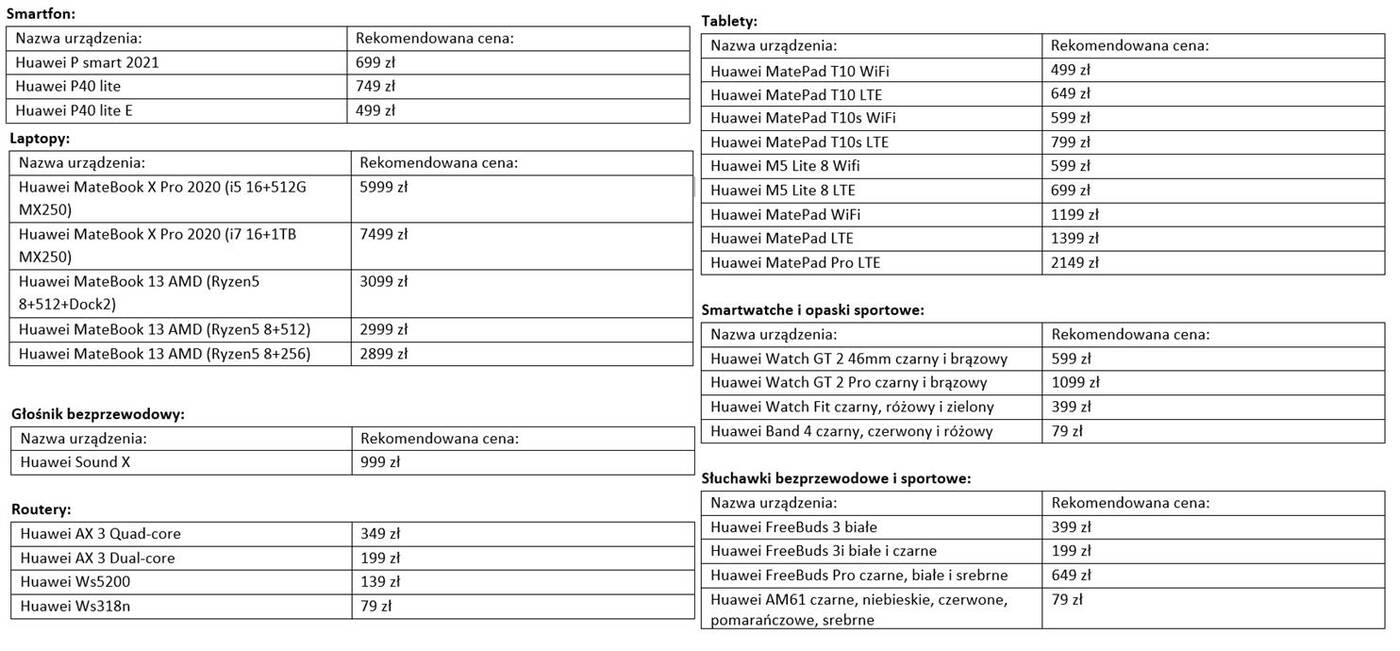 Promocje znajdziemy zarówno w oficjalnym sklepie internetowym Huaweia oraz u partnerów firmy. Jest tego sporo, bo oferta obejmuje nowoczesne laptopy, tablety, bezprzewodowe słuchawki, smartwatche i routery.