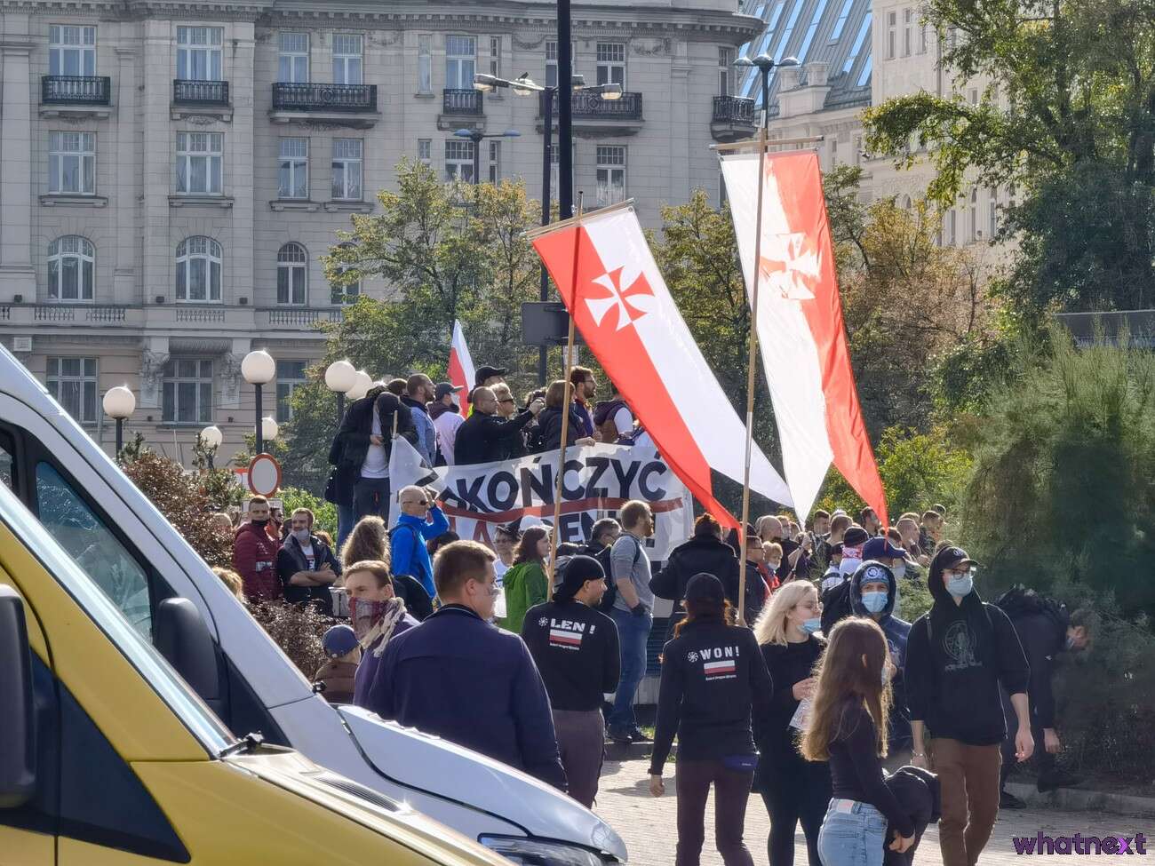 Nie brakowało też osób prowokacyjnie noszących maseczki z siateczki lub ostentacyjnie zsuniętymi na brodę. Nie zabrakło strajkujących przedsiębiorców z Pawłem Tanajno na czele, Żołnierzy Chrystusa, trafił się też transparenty anty-5G, ogółem były zgromadzone wszystkie grupy protestujące przeciwko wszystkiemu, przeciwko czemu da się protestować. A nawet jak wydaje Ci się, drogi Czytelniku, że przeciwko czemuś nie da się protestować, oni to i tak oprotestują.