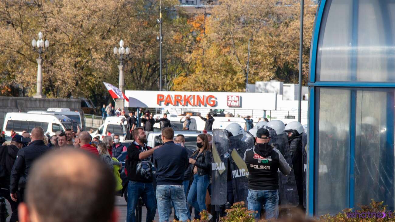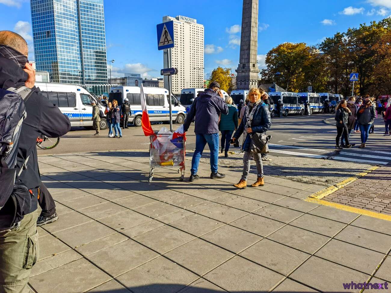 Po chwili część zgromadzonych wybrała się na spacer w kierunku Dworca Centralnego. Szybko zostali odcięci przez kordon Policji przy użyciu granatów hukowych i zawrócili z powrotem w stronę Placu Defilad. To był moment, w którym pojawiły się też armatki wodne, ale nie zostały użyte.