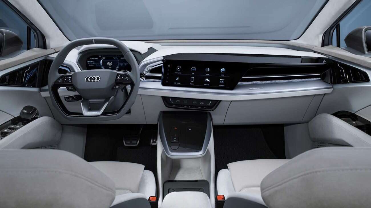 Wewnątrz znajduje się także wirtualny kokpit Audi, który sprowadza się do 12,3-calowego ekranu dotykowego na środku i równie wielkiego cyfrowego zestawu wskaźników. Audi twierdzi również, że Q4 E-Tron Sportback ma jedną z najbardziej przestronnych kabin w swojej klasie.