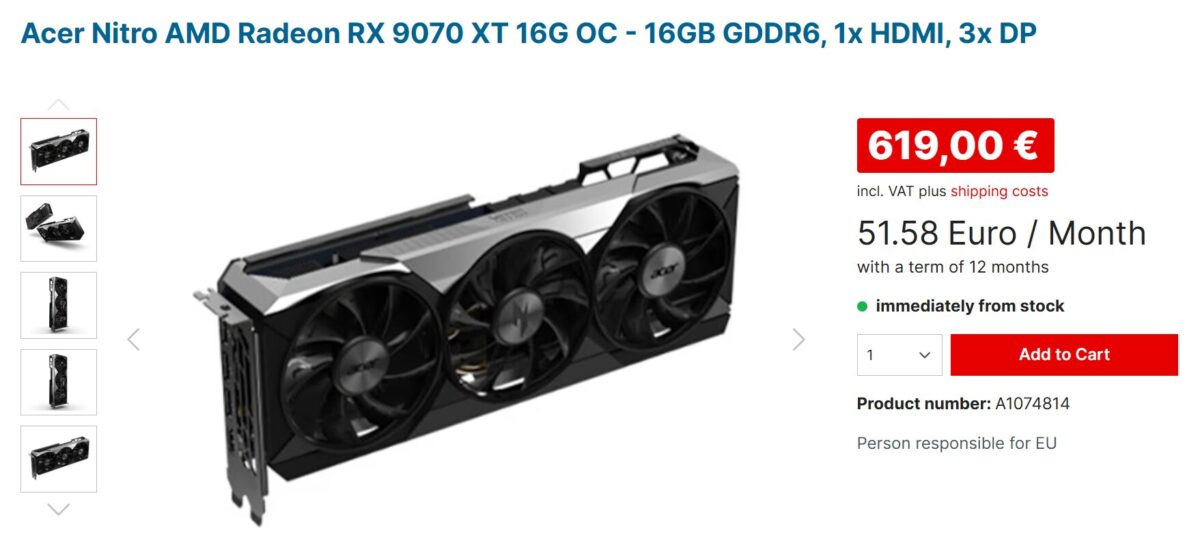 Na rynku niemieckim sytuacja wygląda lepiej – tam RX 9070 XT kosztuje już mniej niż 629 EUR, a więc poniżej MSRP.