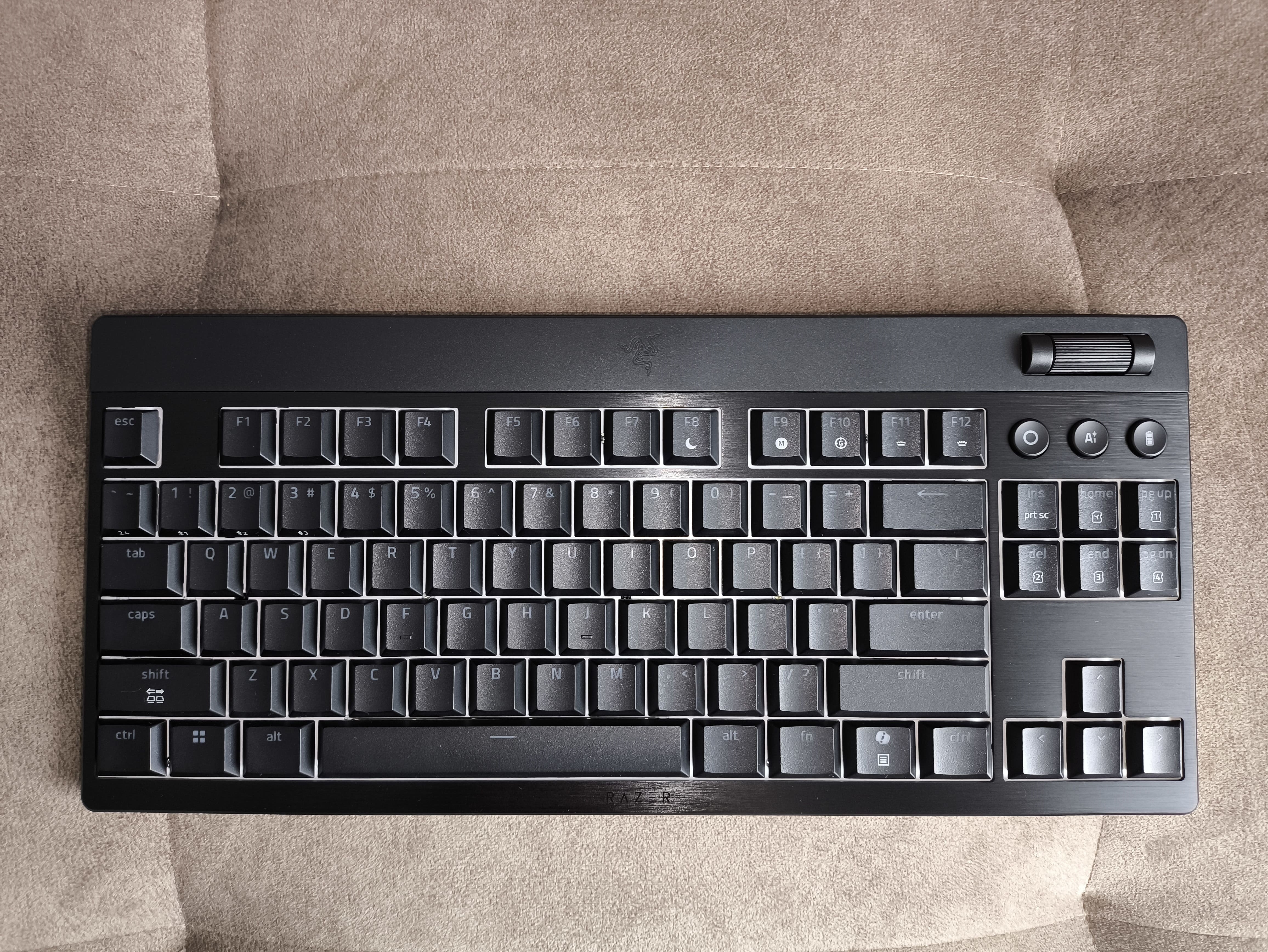 Klawiatura prezentuje się nowocześnie i spójnie – charakterystyczna dla Razera stylistyka została tu połączona z matowym wykończeniem, które skutecznie ogranicza widoczność odcisków palców. Konstrukcja jest masywna i sztywna, dzięki czemu nawet przy mocnym uderzaniu w klawisze całość pozostaje stabilna i nie wykazuje niepożądanego uginania się.