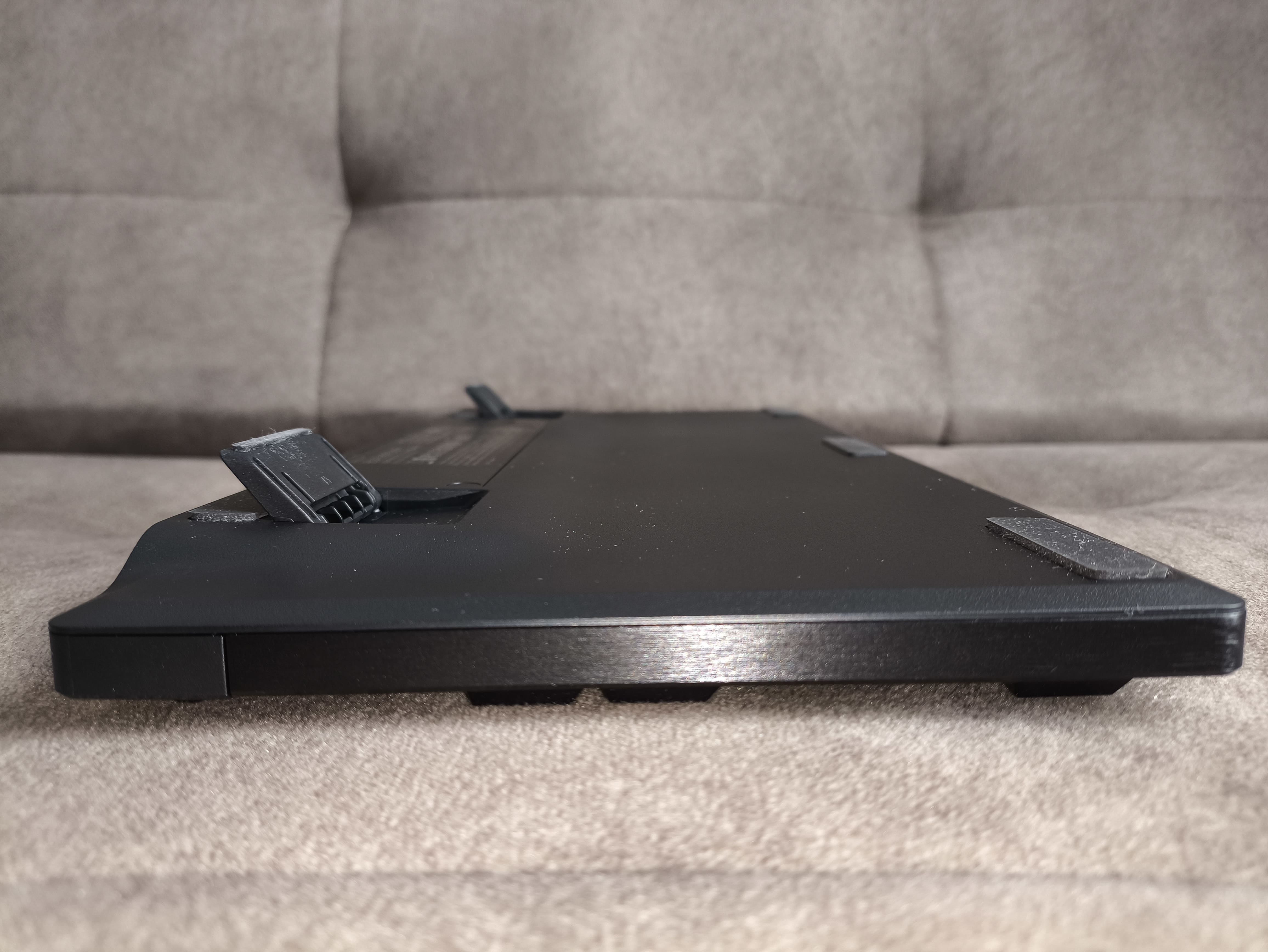 Komfort użytkowania dodatkowo podnosi wyważenie środka ciężkości: większa część masy przypada na tylną część klawiatury, co sprawia, że całość pewnie przylega do powierzchni i nie unosi się przy silniejszym nacisku na front.