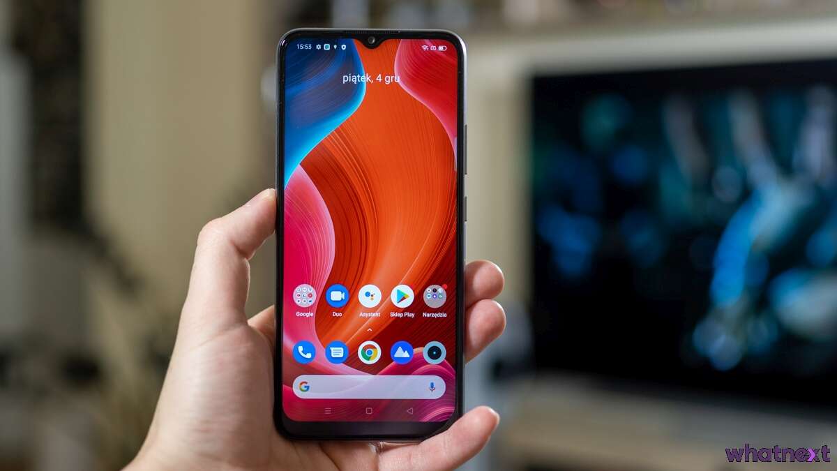Wyświetlacz akurat nie wyróżnia się w tej cenie tak jak wzornictwo, co nie znaczy, że jest źle. 6,5 calowy ekran IPS o rozdzielczości 1600 x 720 jest co prawda odświeżany w standardowych 60 Hz, ale jest bardzo jasny, ma nasycone barwy i bardzo dobre kąty widzenia. Pośrodku górnej krawędzi ma „łezkę” na przednią kamerę, co zapewne już zauważyliście na zdjęciach. W ustawieniach jest tryb ciemny dla menu i możliwość włączenie filtra światła niebieskiego.