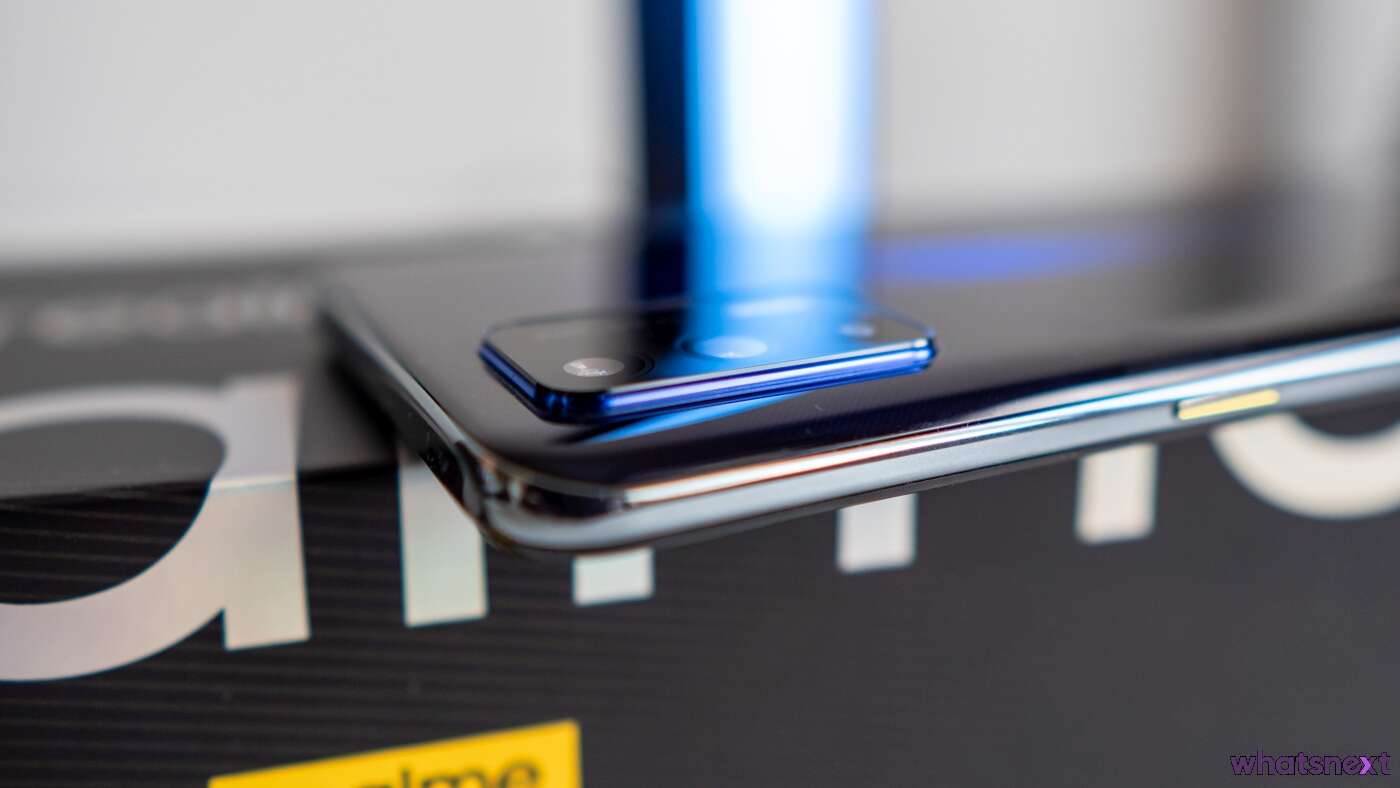 Tylne panel jest szklany, miło. A korpus metalowy, bardzo miło. W dodatku ma ściętą górną i dolną krawędź. Cudownie! Ktoś podpatrzył to u konkurencji, ale to bardzo dobre rozwiązanie, które mocno popieram. Ścięcie jest jednak inne niż np. w Huaweiu P40, vivo X60 i X51 5G oraz Xiaomi Mi 11 Ultra. Tam mamy dodatkowo wstawiony mały element, w realme cały korpus jest jedną całością.