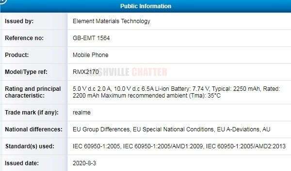 Realme X3 Pro będzie miał baterię o pojemności 4400 mAh. Zostanie to połączone z szybkim ładowanie 65W (6,5 A przy 10 V). Numer modelu to RMX2170.