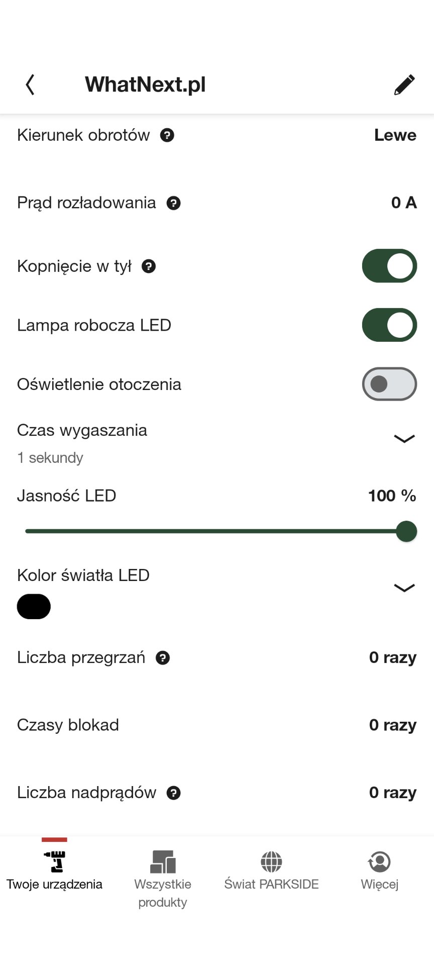 Parkside PPBSSA 12 BF24 A1 to jedna z nielicznych wkrętarek w tym przedziale cenowym, która oferuje łączność z aplikacją mobilną. System ten pozwala na bardziej zaawansowaną kontrolę nad ustawieniami narzędzia i analizę jego pracy, choć należy od razu zaznaczyć – nie jest to funkcja niezbędna do codziennego użytkowania. Po sparowaniu urządzenia z aplikacją PARKSIDE (dostępną na Android i iOS), użytkownik zyskuje dostęp do takich funkcji jak: