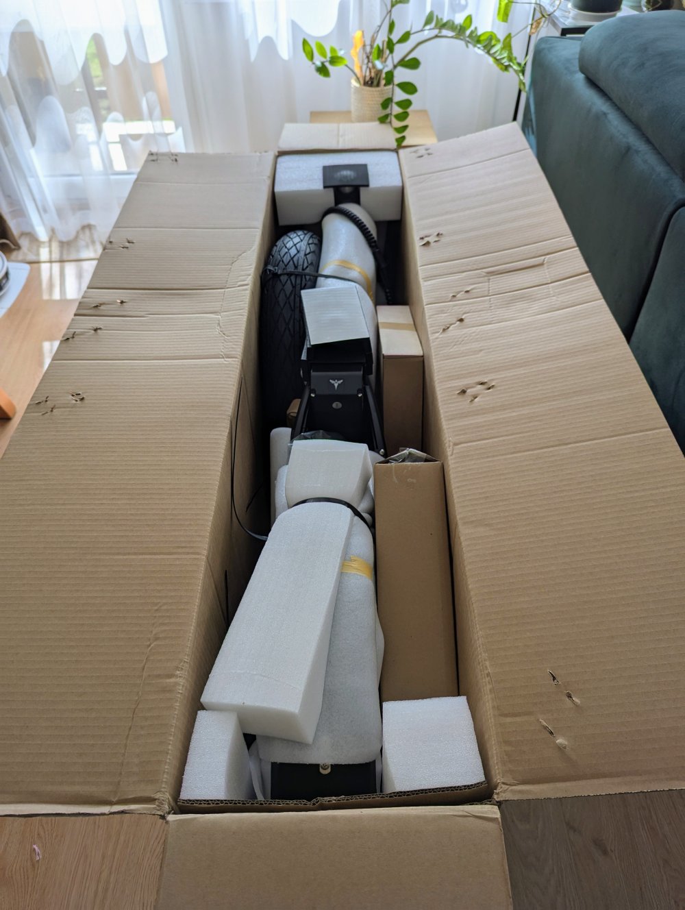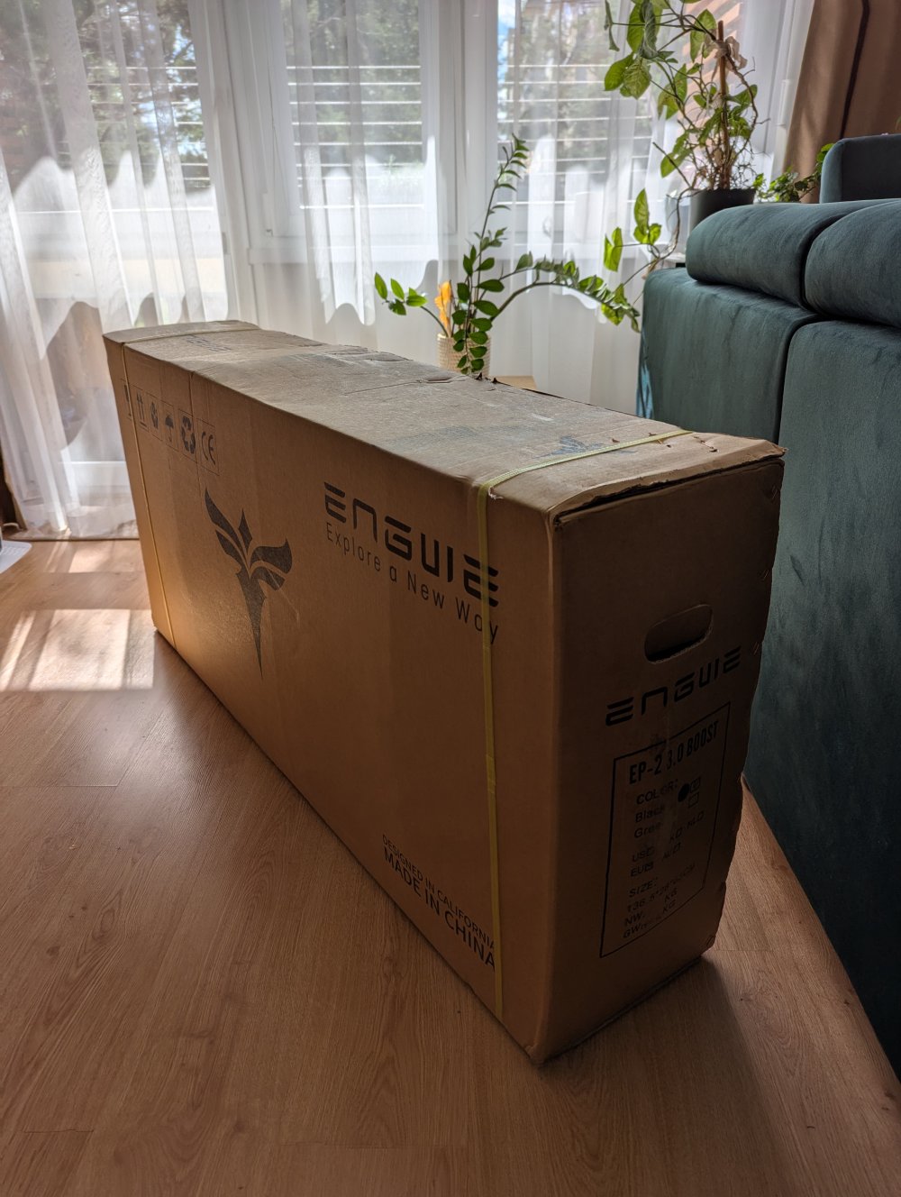 Parametry wskazują, że model EP-2 3.0 Boost należy do segmentu rowerów o wzmocnionej konstrukcji, zdolnych przewozić większe obciążenia i radzić sobie w bardziej zróżnicowanych warunkach drogowych. Dzięki zastosowaniu szybkiej ładowarki 4A czas ładowania akumulatora został skrócony do około trzech i pół godziny, co czyni go praktycznym rozwiązaniem w codziennym użytkowaniu. Zanim jednak przejdziemy dalej, sprawdźmy jak wyglądał złożony rower dostarczony przez kuriera.