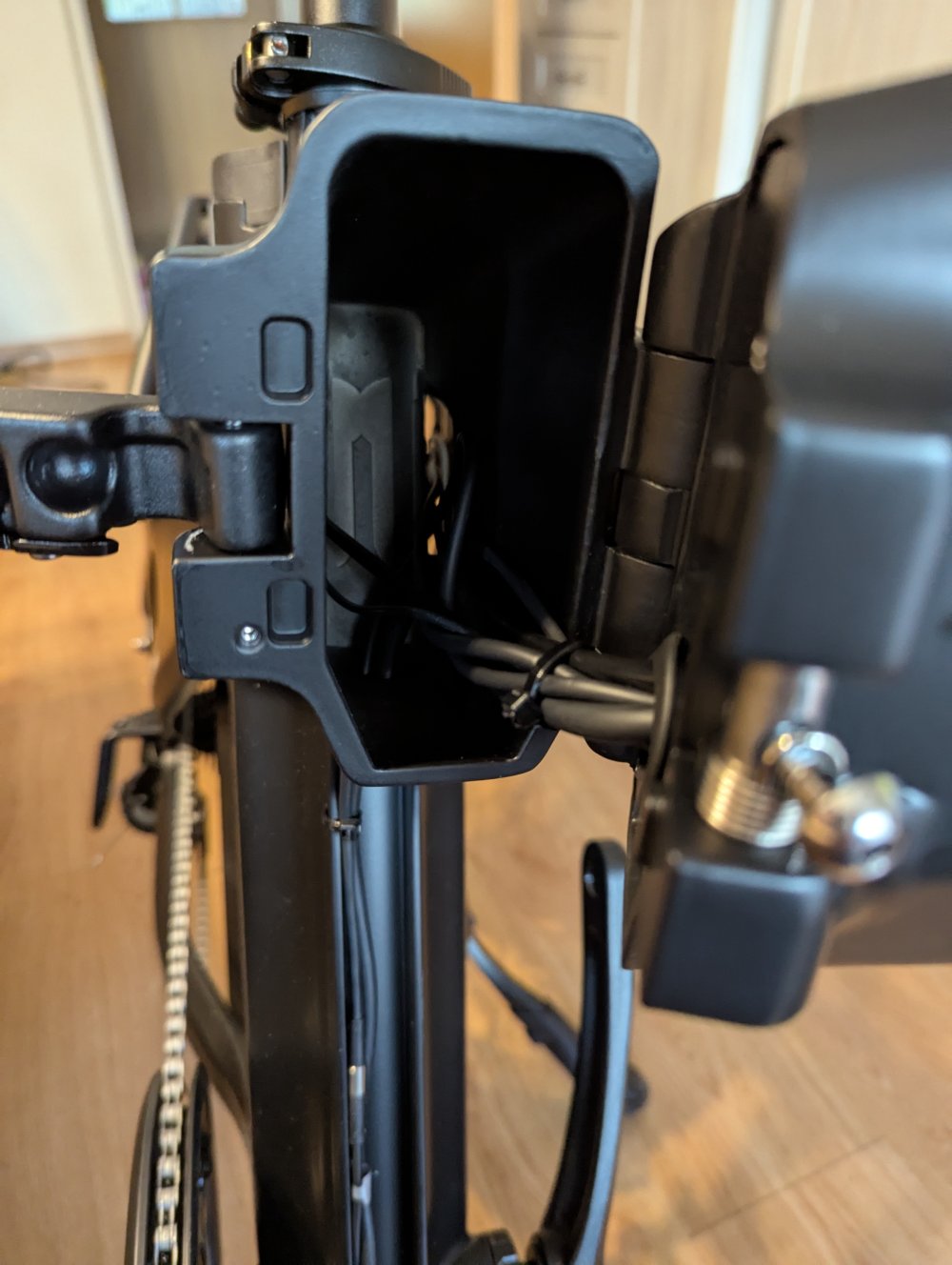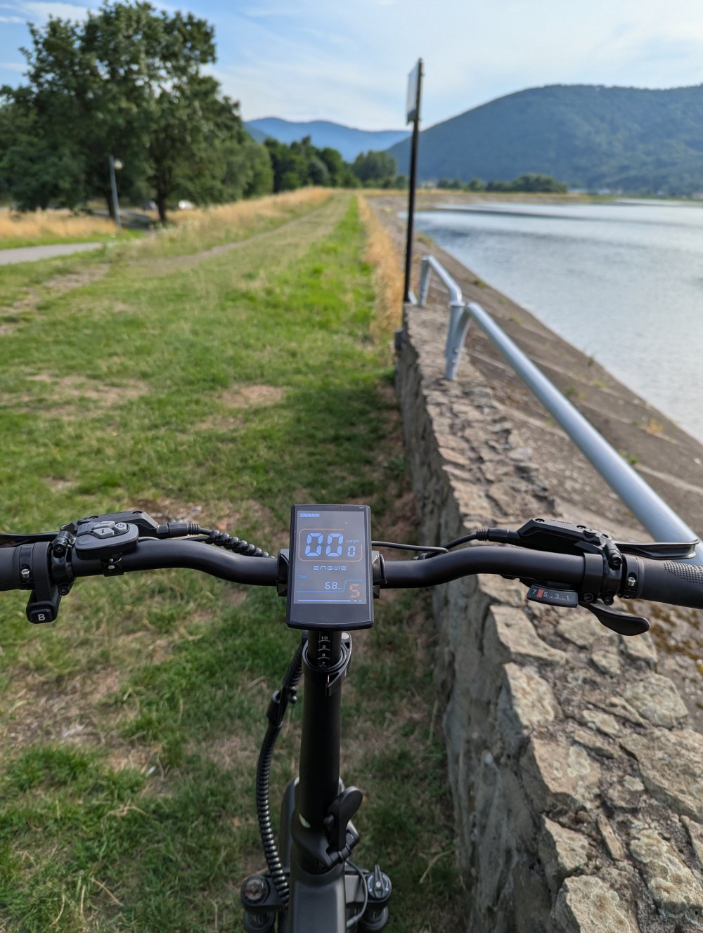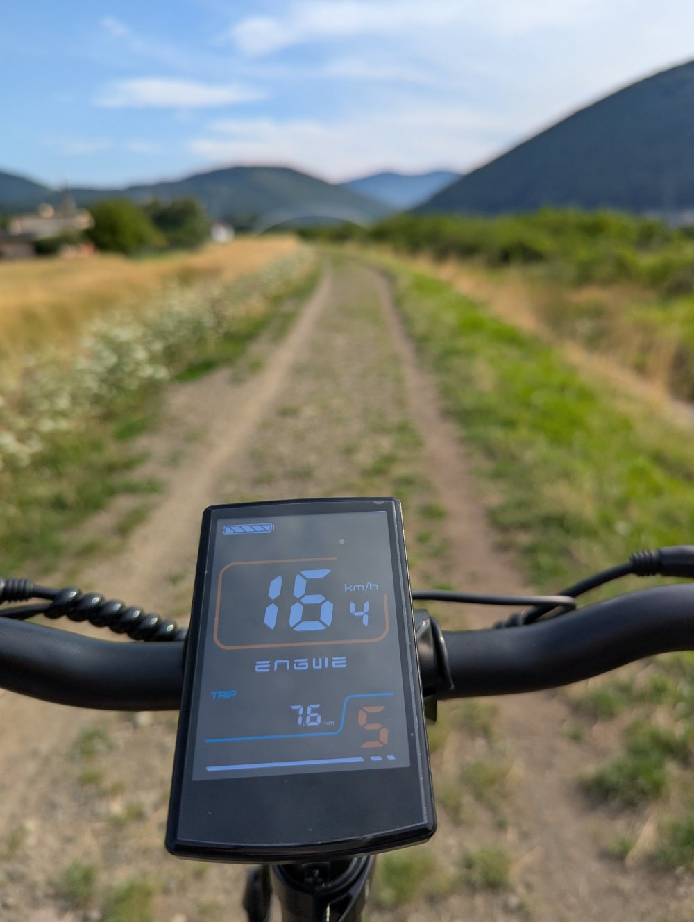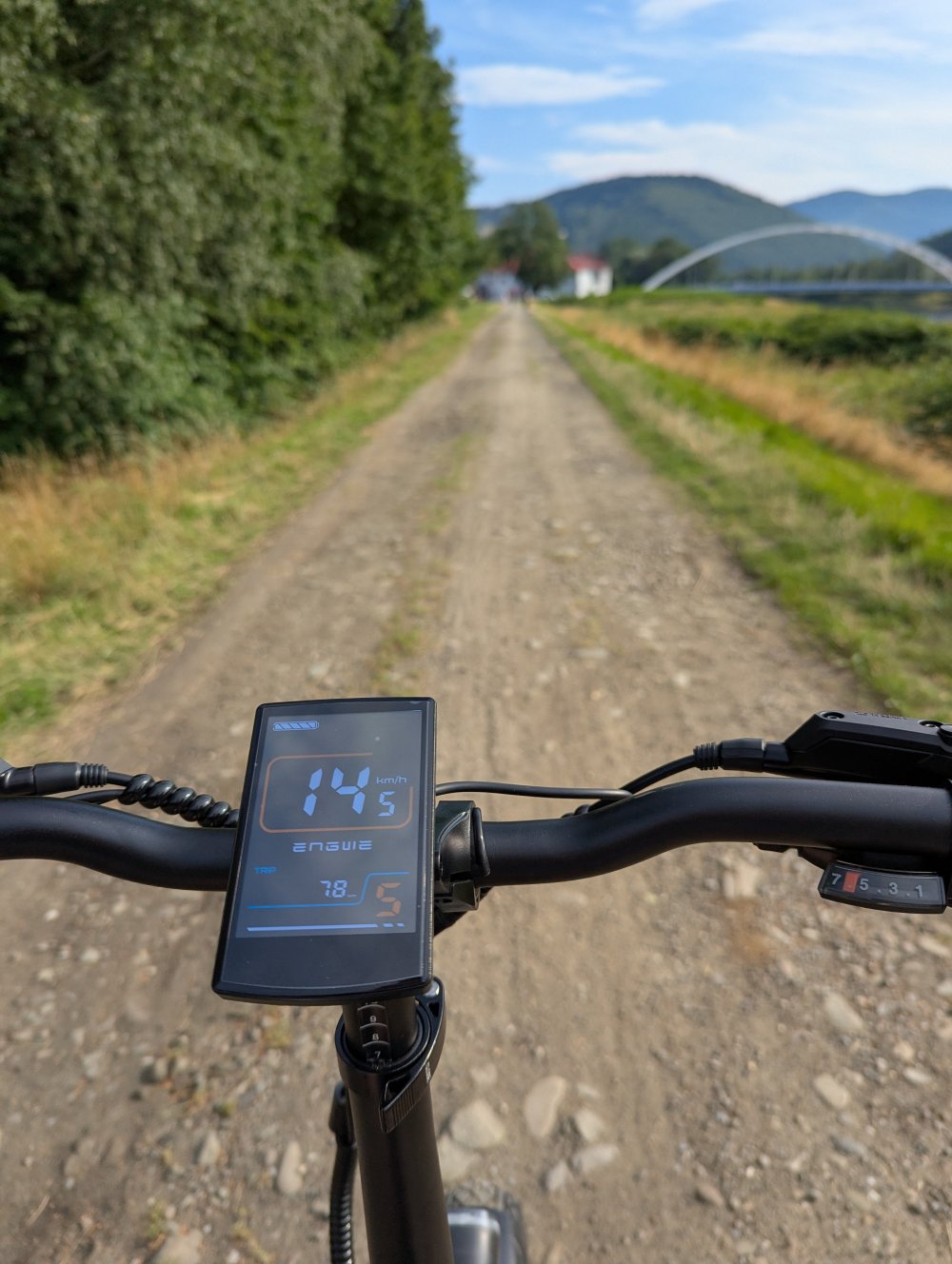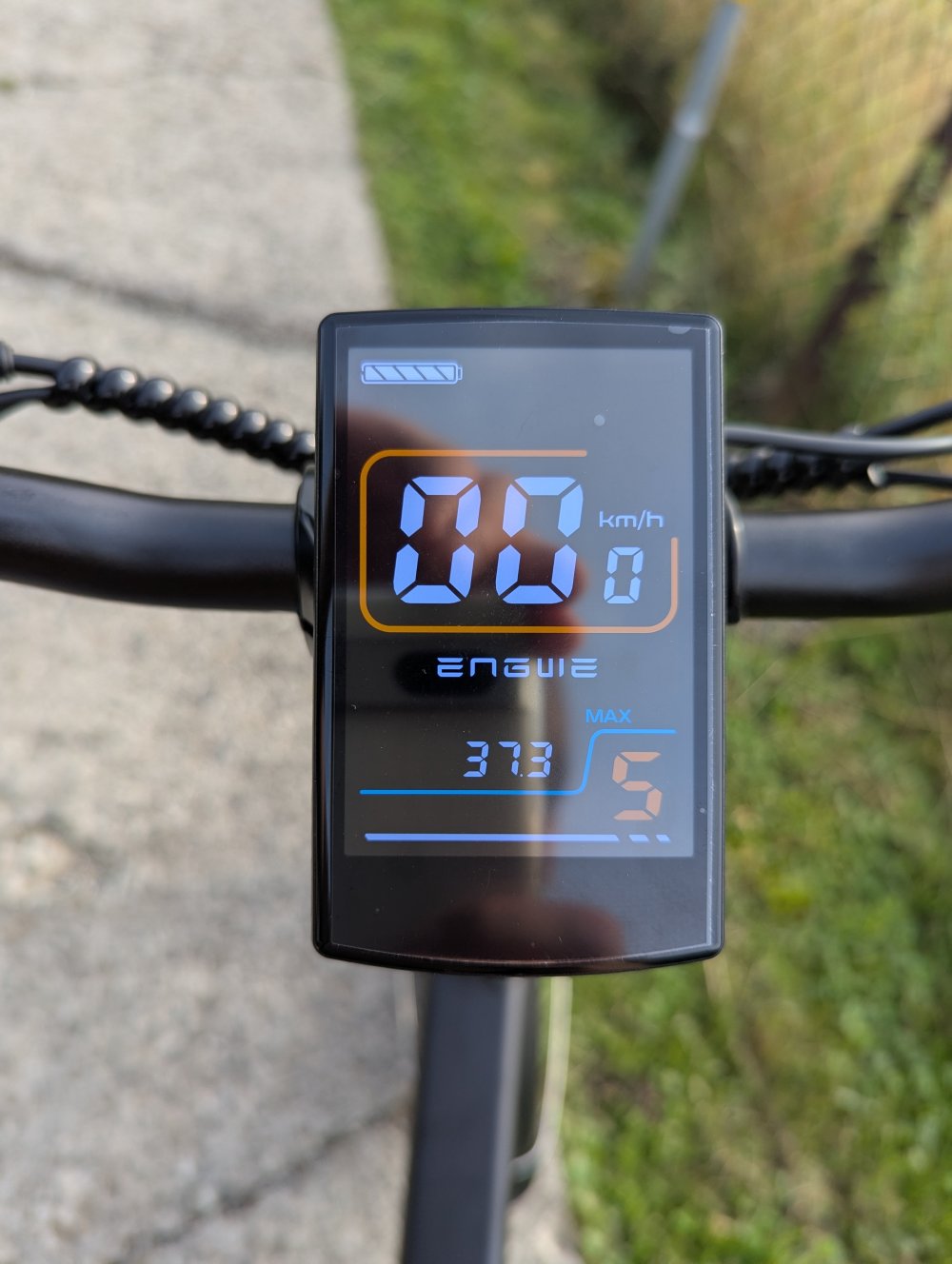 Rower został wyposażony w 3,5″ wyświetlacz LCD umieszczony centralnie na kierownicy, który prezentuje najważniejsze informacje podczas jazdy. Na ekranie znajdziemy podstawowe dane dotyczące prędkości, przebiegu, poziomu naładowania baterii, aktualnego trybu wspomagania czy sparowania z aplikacją mobilną. Dzięki temu w każdej chwili można kontrolować parametry jazdy i dostosować je do warunków na trasie. Panel jest czytelny także w pełnym słońcu, co zwiększa komfort w trakcie jazdy w dzień.