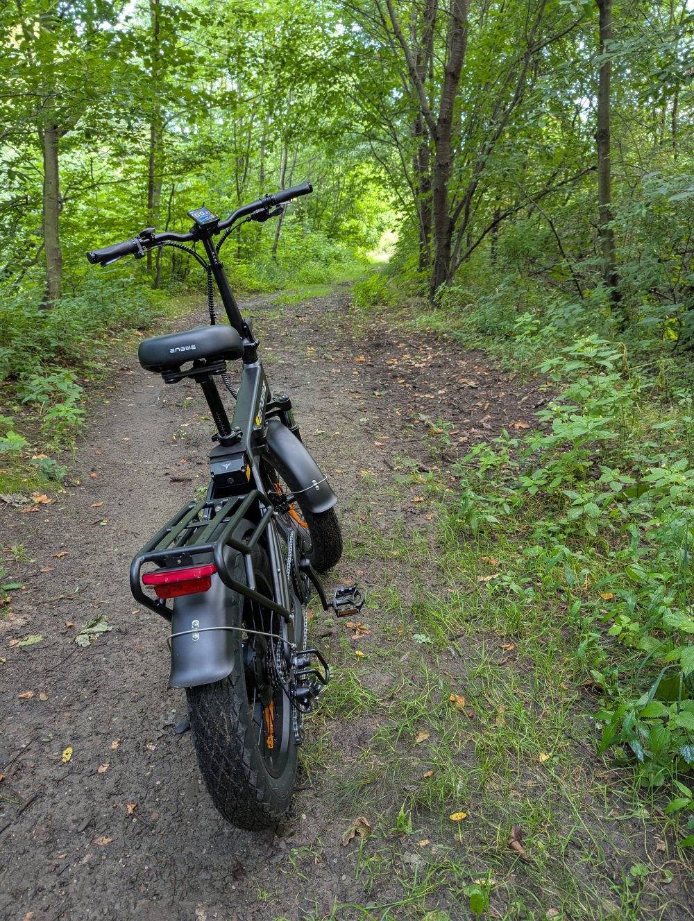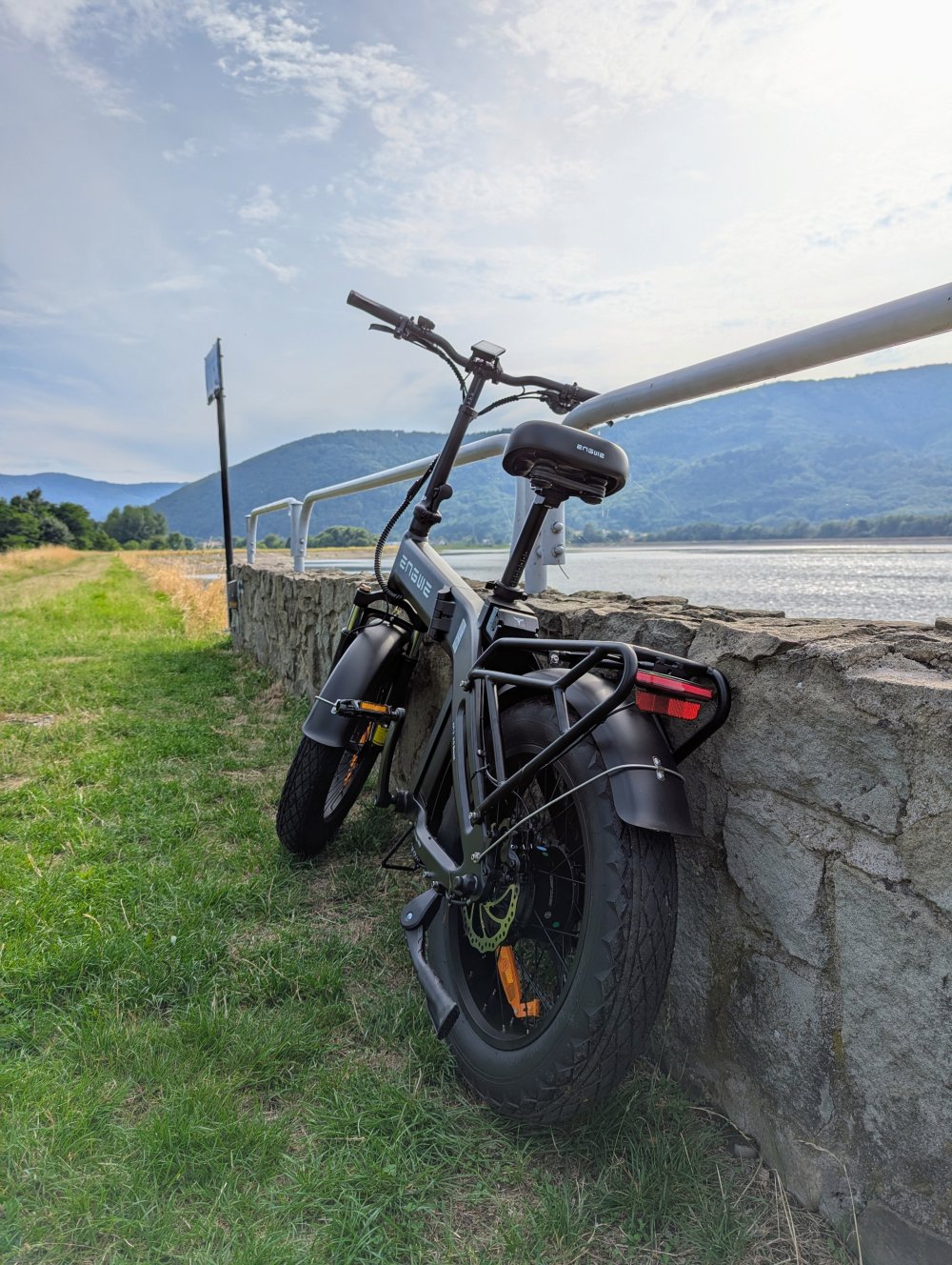 Na terenach pozamiejskich rower korzysta ze swoich szerokich opon 20 × 4″, które zwiększają przyczepność i stabilność na nieutwardzonych drogach. Dzięki temu model radzi sobie na żwirze, piasku czy leśnych ścieżkach, a wspomaganie elektryczne i przycisk Boost dodatkowo ułatwiają pokonywanie wzniesień. Wodoodporność klasy IPX5 chroni rower przed deszczem i zachlapaniami, co pozwala korzystać z niego niezależnie od warunków pogodowych.