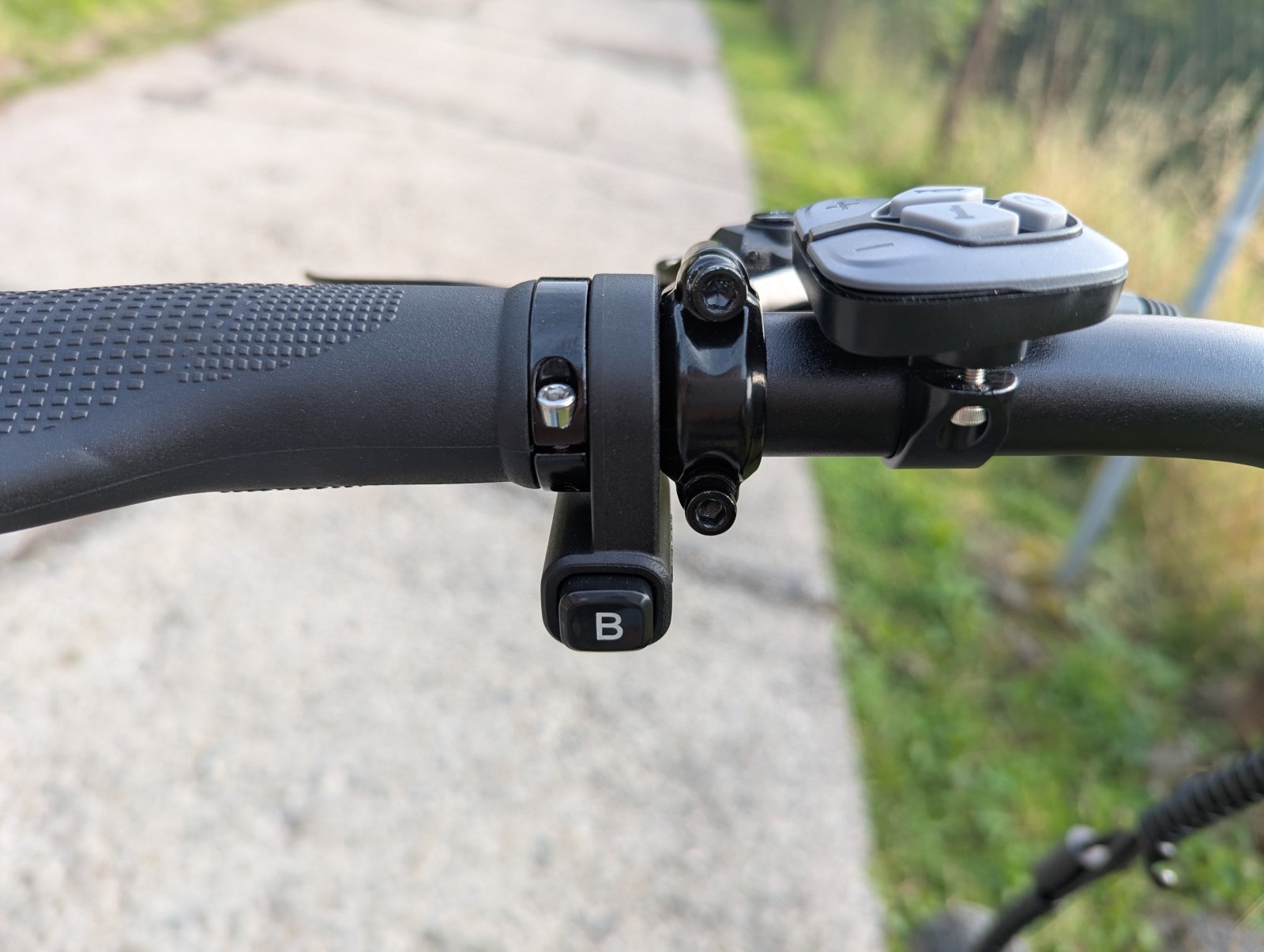 - Przycisk „Boost” na kierownicy – po jego wciśnięciu rower chwilowo zwiększa moc wspomagania, co szczególnie pomaga podczas ruszania na wzniesieniach i szybkiego przyspieszania.