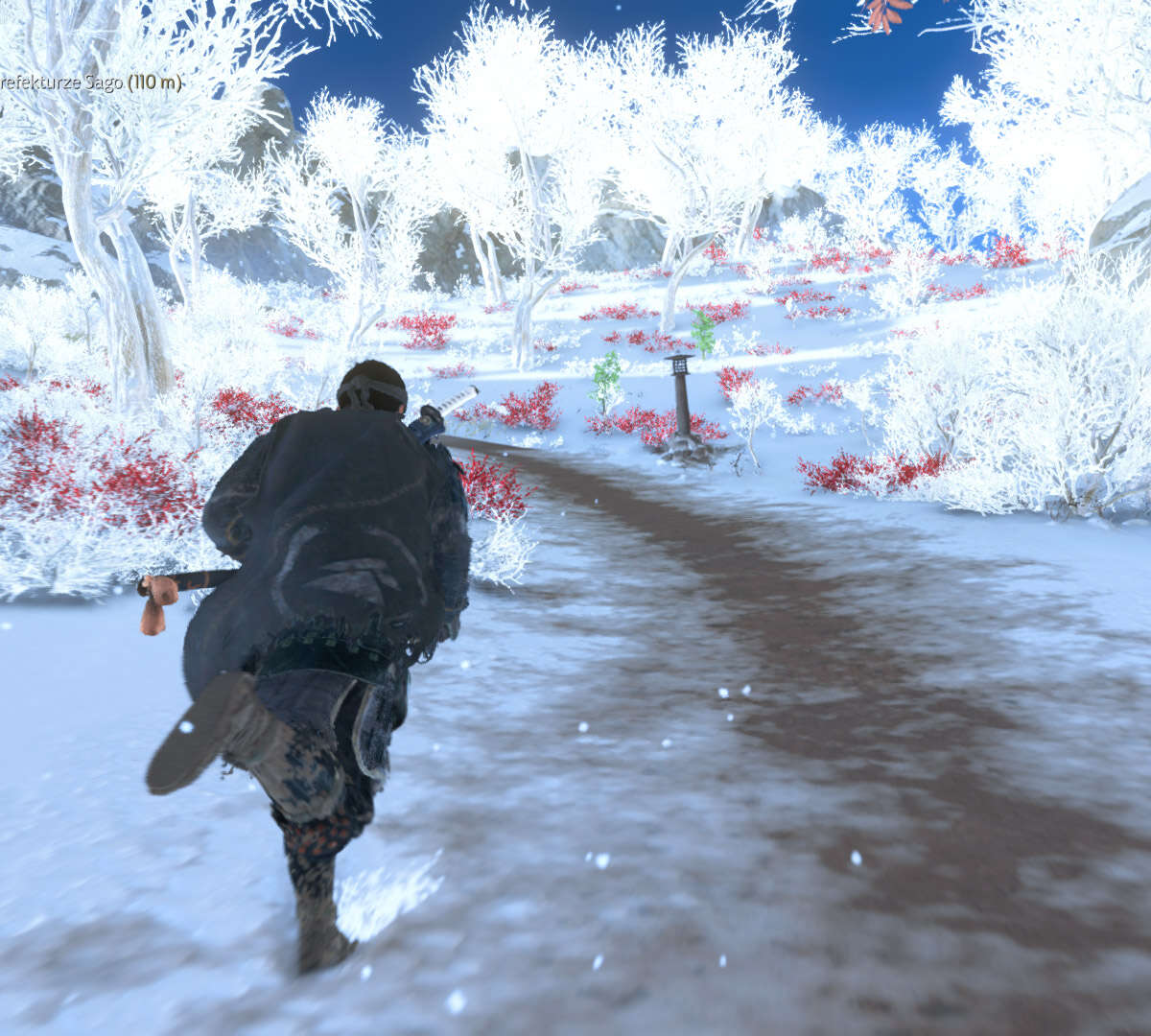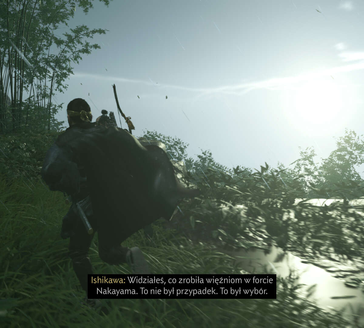 Tropienie – w Wiedźminie 3, gdy szukaliśmy jakiejś osoby po jej śladach to mogliśmy pominąć niektóre z nich i dotrzeć do celu nawet przez przypadek. W Tsushimie ślady osoby, której szukamy nie załadują się (!) jeśli nie odnajdziemy poprzednich. Ominiesz je o kilka metrów i szukasz dalszej części? Nie znajdziesz, musisz sobie wrócić do miejsca w trawie, gdzie nagle się urwały i tam kliknąć przycisk. Co z tego, że jak byk widać, że okolicą ktoś przechodził. Tekstury śladów jednak nie będzie.