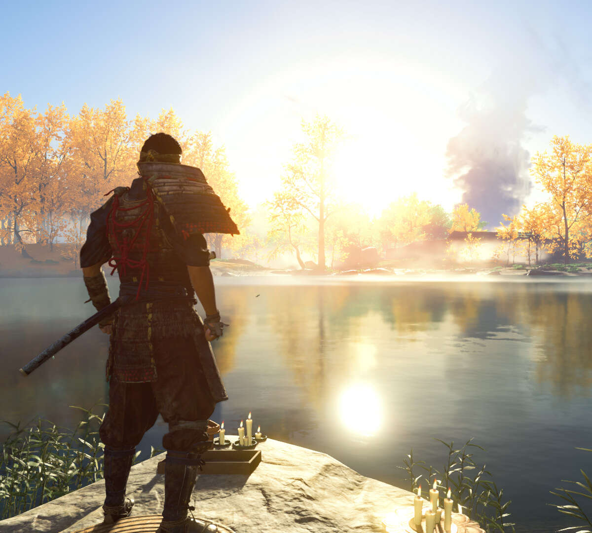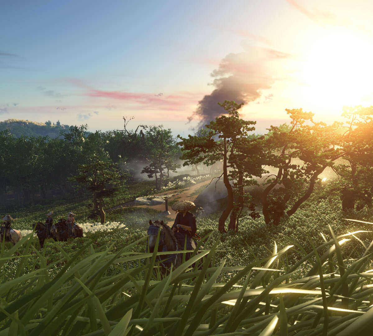 Udźwiękowienie i dialogi. O ile Ghost of Tsushima „brzmi” naprawdę nieźle to niestety zdarzały się momenty, kiedy dźwięk z gry… ciął się! Coś takiego może zdarzyło mi się podczas tej generacji konsol drugi raz, ale jednak – przy większym zamieszaniu na ekranie, udźwiękowienie znikało lub przerywało. Bardzo dobrze wypada za to strona melodyczna. Muzyka jest klimatyczna i oddaje ducha gry.