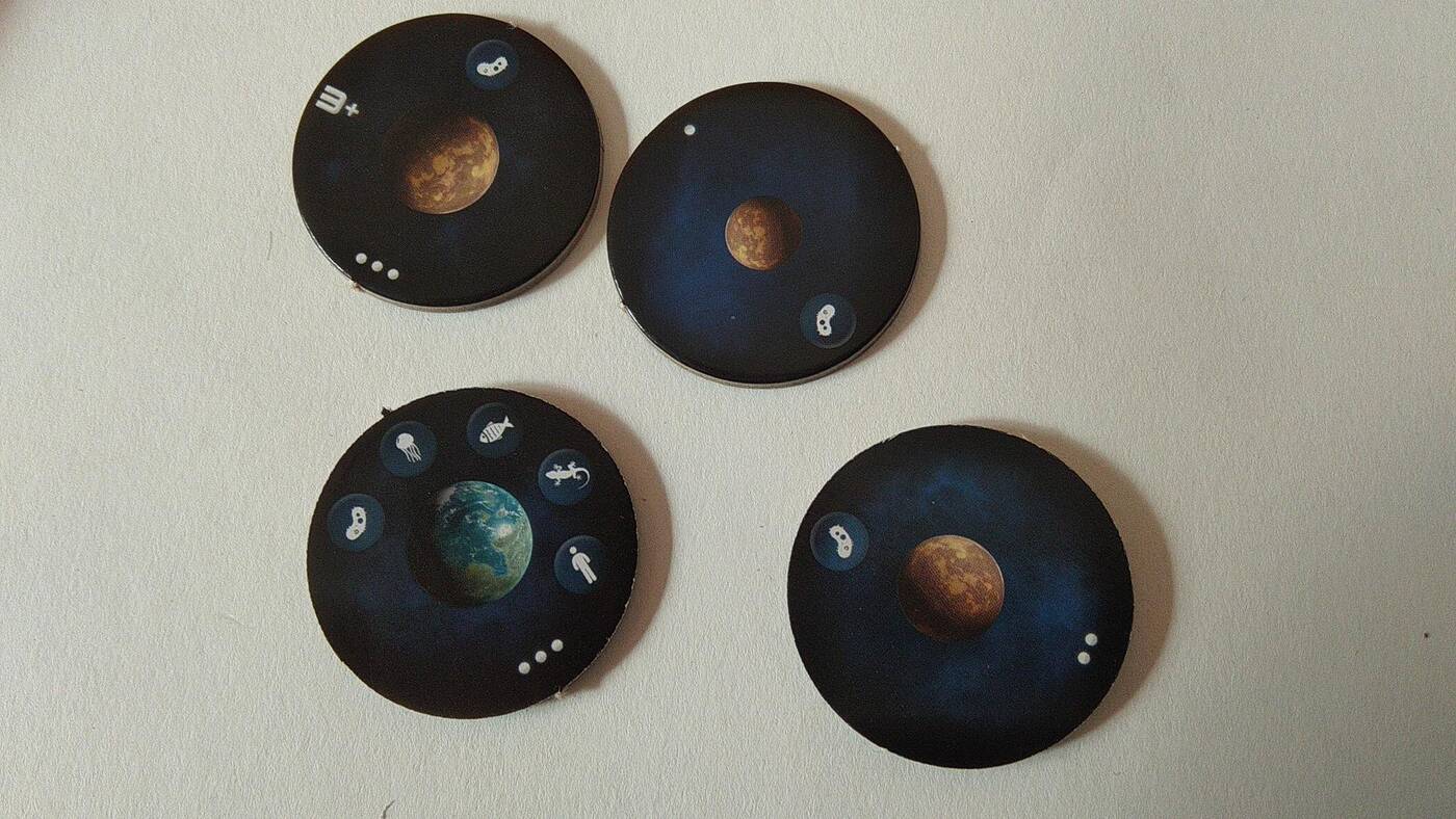 Celem gry jest, jak się domyślacie, zdobycie jak największej liczy punktów. Te zaś dostajemy za wykonywanie zadań z kafli celów, posiadanie rzadkich ciał niebieskich czy rozwój życia na naszych planetach. Sama rozgrywka to właściwie bardzo prosty worker placement – umieszczamy nasz znacznik na jednej z 4 stref, a następnie wykonujemy dozwolone akcje. Możemy więc umieszczać kolejne planety w naszym systemie, powiększać ich rozmiar poprzez „zderzenie”, tworzyć na nich życie czy też umieszczać satelity na ich orbicie. Całość mechaniki jest bardzo spójna z tematyką Cosmogenesis.