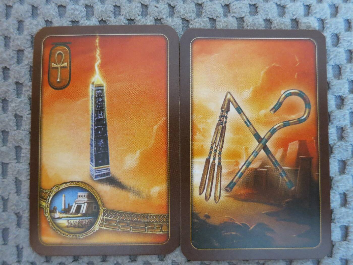 Jeśli chodzi o planszetki i kafle to są one pierwszej klasy. Twarde, sztywne jak przyrodzenie podczas sesji z Pornhubem, do tego z grafikami nawiązującymi do starożytnego Egiptu. Znawcy pewnie wyłapią kim są poszczególni bogowie, ja rozpoznałem jedynie Anubisa i Horusa. Szkoda, że nie wałkuje się egipskiej mitologii na lekcjach polskiego tak chętnie, jak greckiej czy rzymskiej.