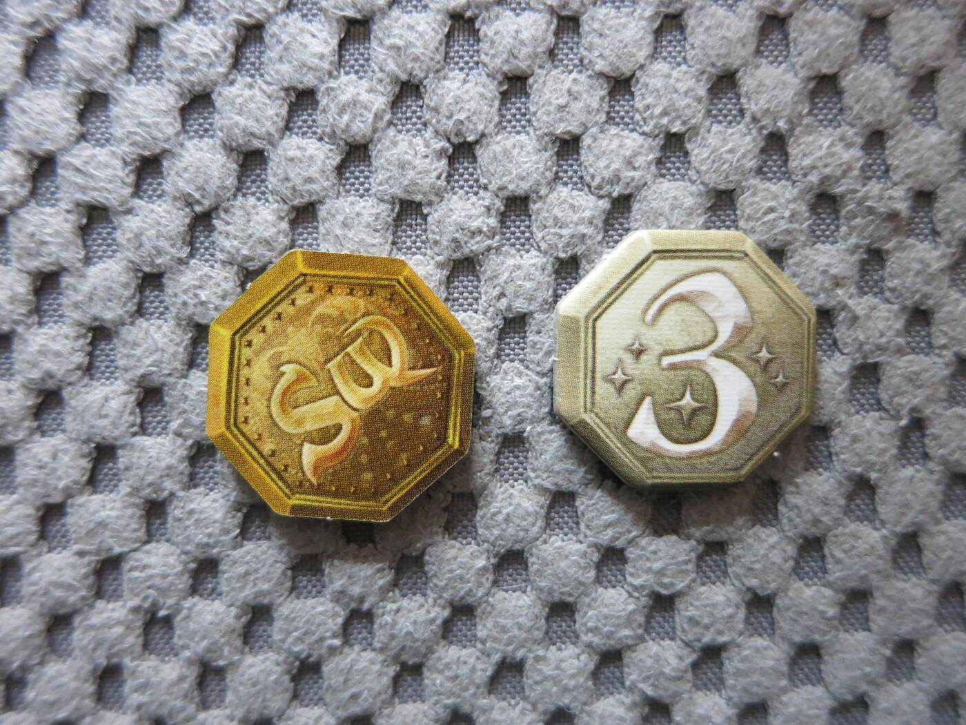 - Zdobywanie monet zwycięstwa – na koniec swojej tury gracz otrzymuje 1 monetę za każdy kontrolowany teren. Punkty te są niejawne.
