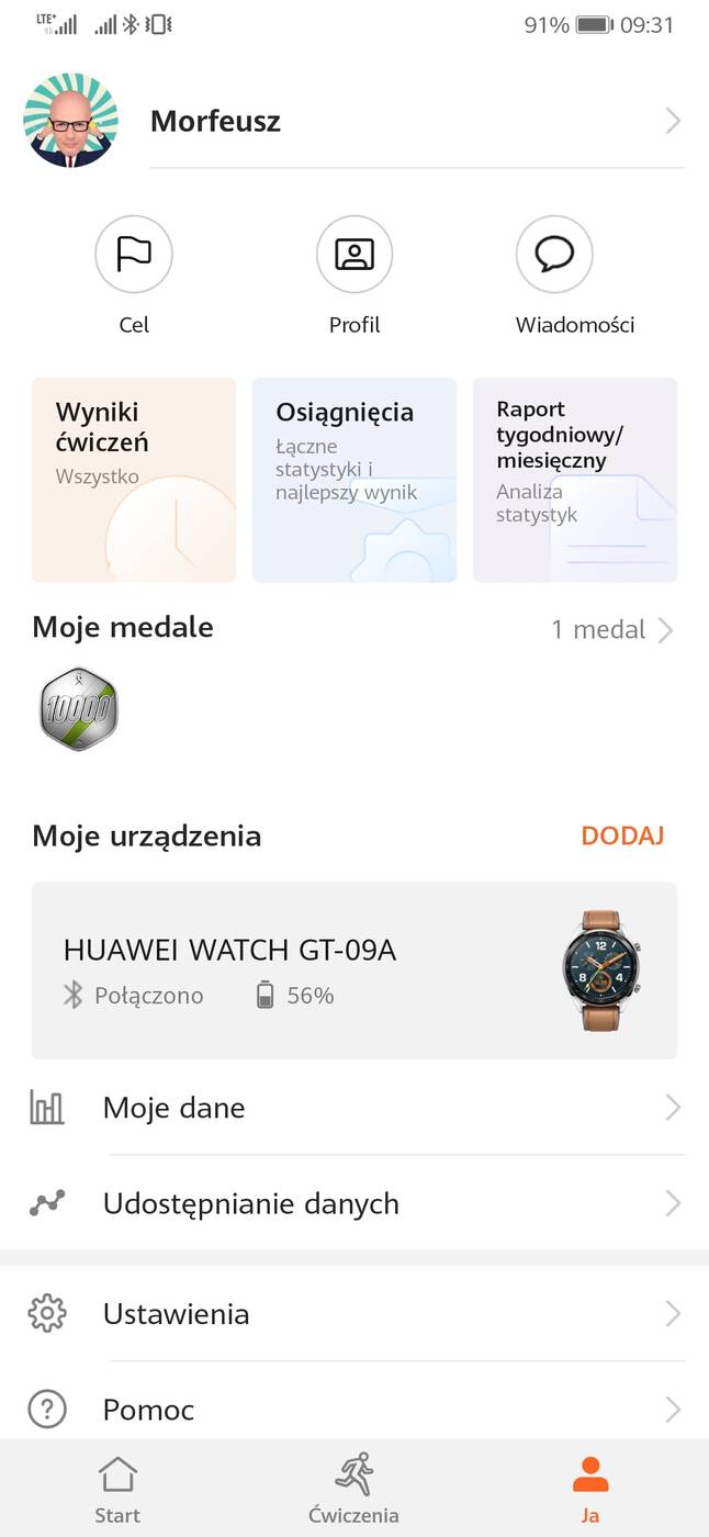 Do komunikacji ze smartfonem Huawei Watch GT wykorzystuje znaną aplikację producenta o nazwie Zdrowie (Huawei Health), którą znajdziemy w każdym smartfonie Huawei bądź pobierzemy ze sklepów Google Play lub App Store.