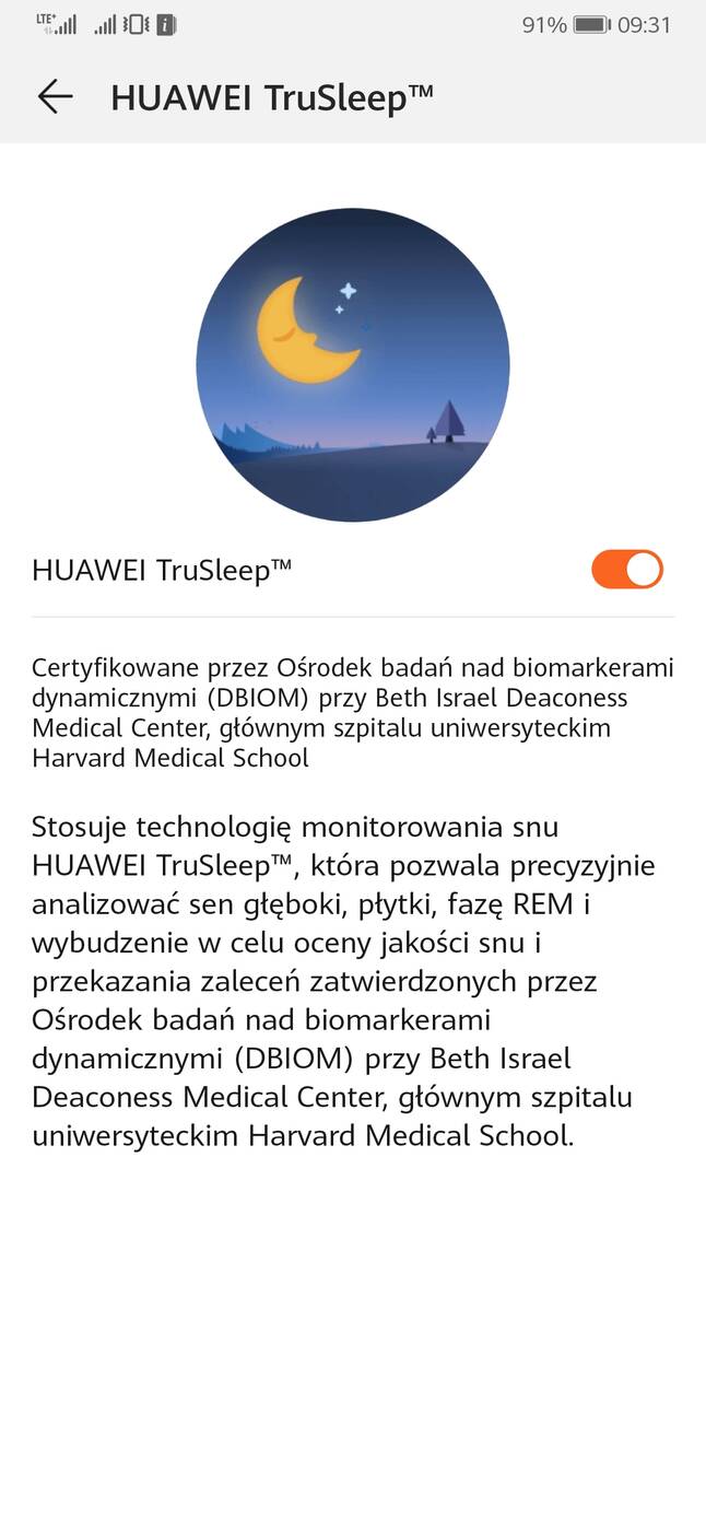 Huawei Watch GT oferuje także zaawansowane monitorowanie poszczególnych faz snu (TruSleep 2.0), sugerując użytkownikowi, co powinien zrobić, by się dobrze wysypiać.