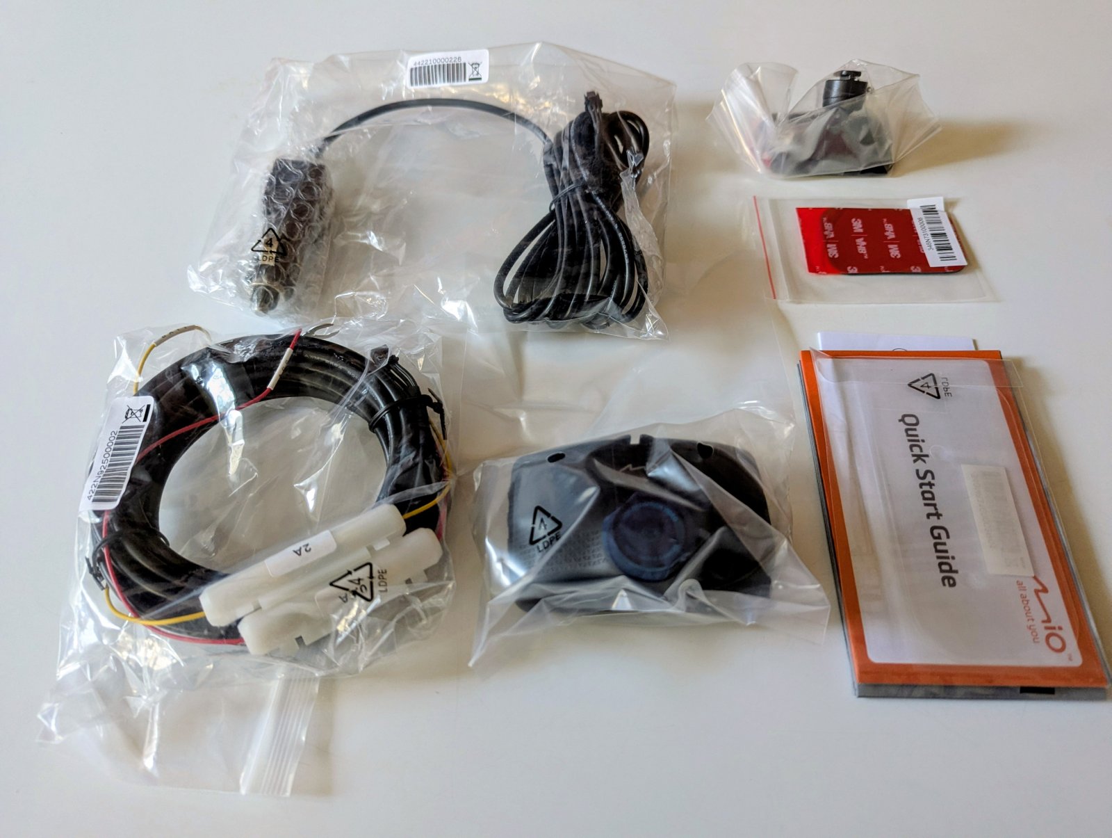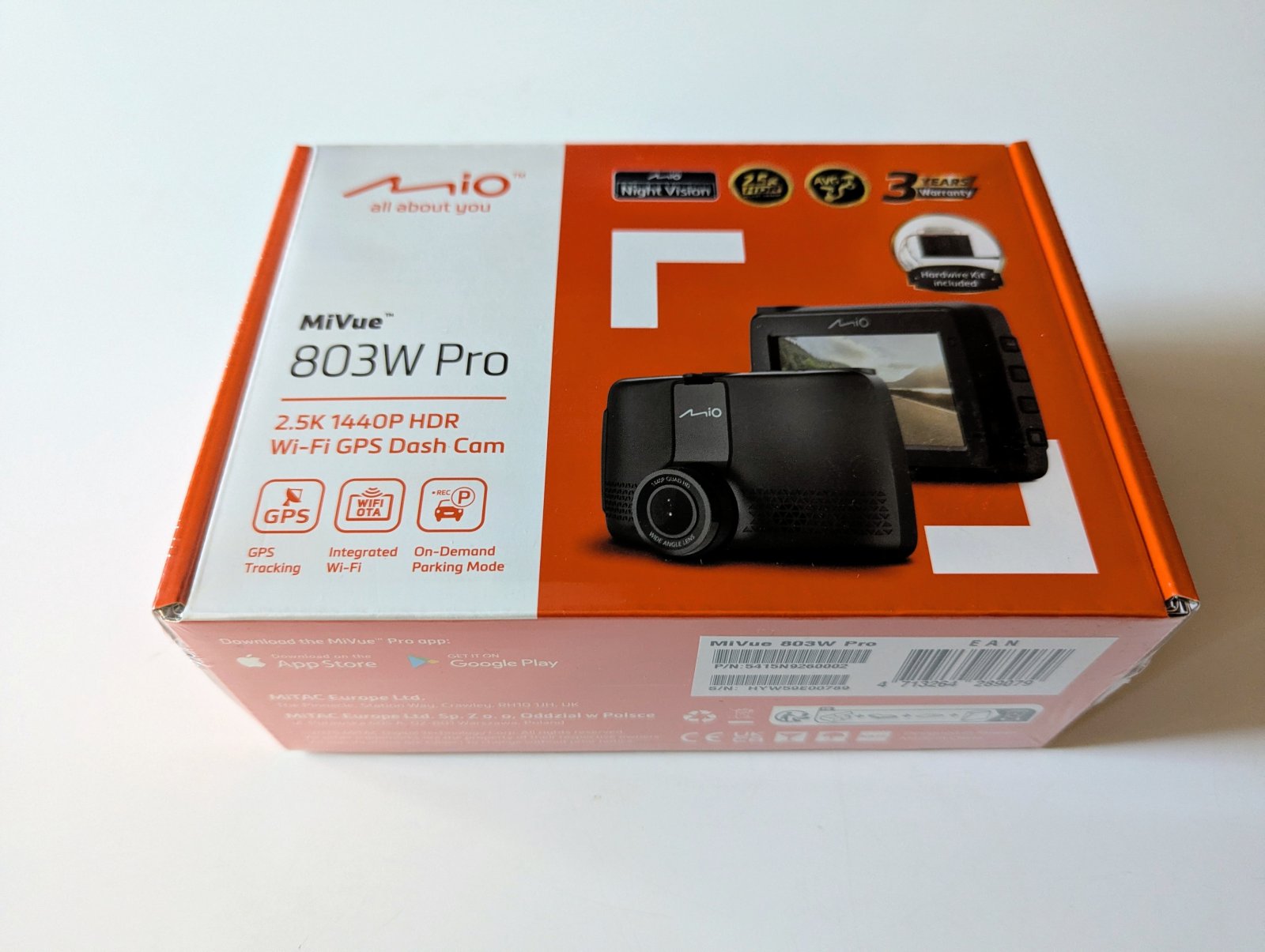 MiVue 803W Pro należy do kompaktowych rejestratorów montowanych na przedniej szybie. Ma on wymiary ok. 86 × 54 × 26 mm oraz masę na poziomie ok. 107–108 g, przy ekranie 2,7″ TFT LCD. Taki format pozwala umieścić kamerę w obszarze za lusterkiem wstecznym, tak aby nie zasłaniała pola widzenia kierowcy, a jednocześnie miała pełen wgląd w drogę. Z punktu widzenia użytkownika istotne jest to, co znajduje się w pudełku, bo od tego zależy, czy trzeba będzie dokupować dodatkowe akcesoria. W przypadku MiVue 803W Pro zestaw jest dość kompletny.