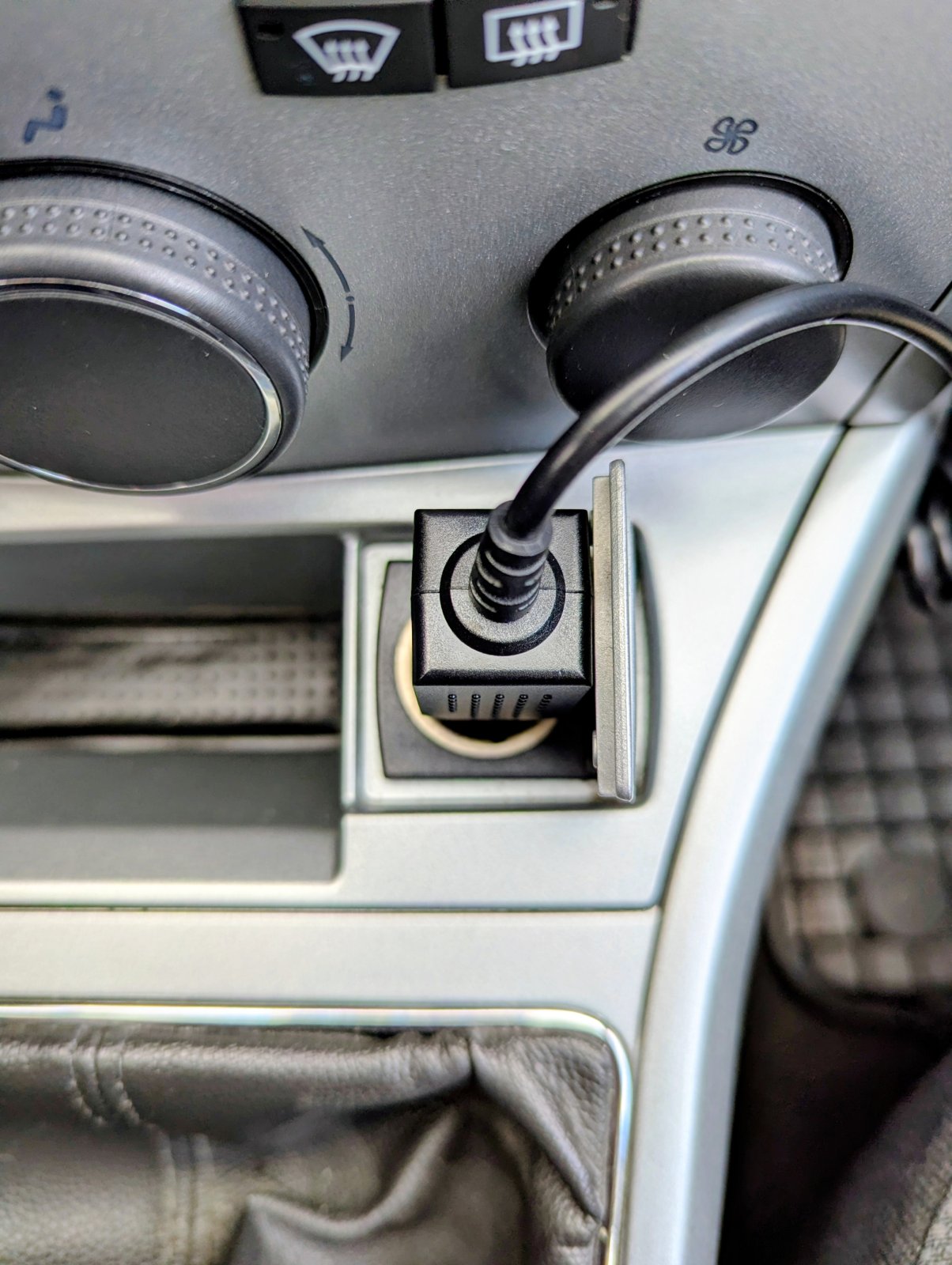 zwykłe podłączenie przez ładowarkę samochodową oraz stałe wpięcie do instalacji za pomocą dołączonego przewodu. To drugie rozwiązanie jest szczególnie istotne w kontekście wbudowanego trybu parkingowego, który w tym modelu korzysta z własnego zasilacza pełniącego funkcję smartboxa i wymaga podłączenia bezpośrednio do instalacji 12 V (producent informuje o braku obsługi pojazdów 24 V).