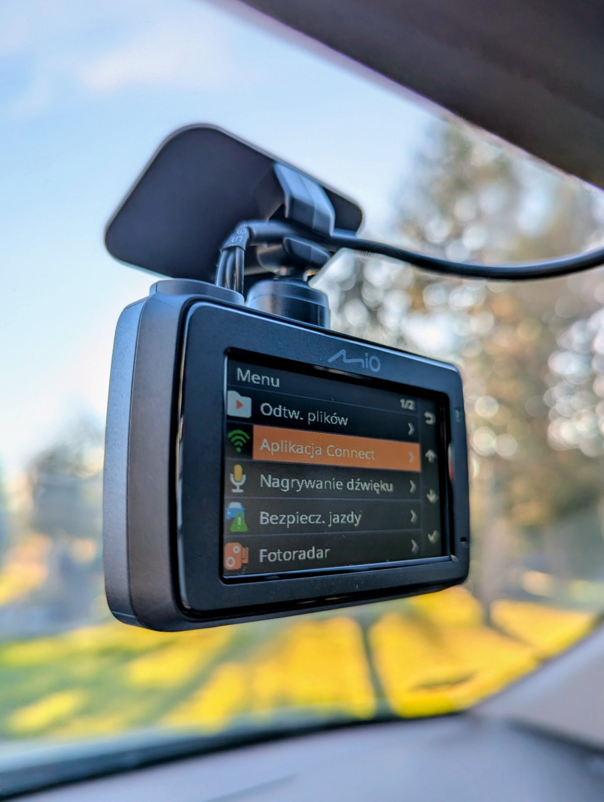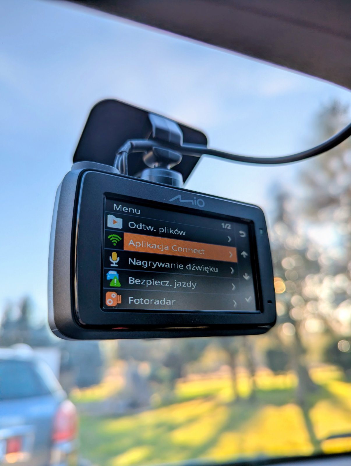 Dzięki temu MiVue 803W Pro nie wymaga, żeby za każdym razem wyjmować kartę microSD i przenosić ją do czytnika – większość pracy z nagraniami oraz ustawieniami odbywa się bezpośrednio w aplikacji, co w codziennym użytkowaniu zwyczajnie oszczędza czas.