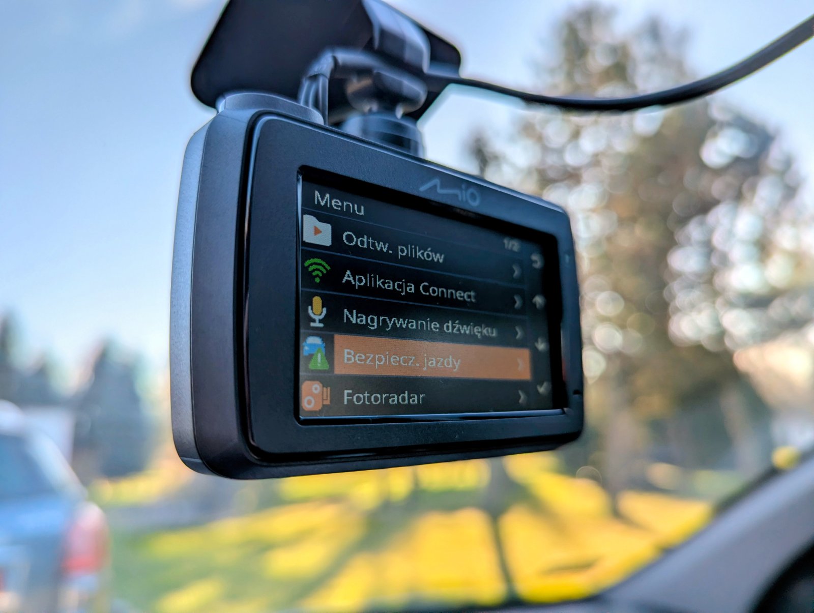 Warto też wspomnieć o funkcjach zdalnej konfiguracji. Za pomocą MiVue Pro można zmieniać ustawienia wideorejestratora, a nawet sformatować kartę pamięci bez konieczności klikania w menu na ekranie 2,7″. To skraca czas potrzebny na konfigurację po montażu lub wymianie nośnika. Istotną częścią ekosystemu są również aktualizacje OTA (Over-the-Air) – rejestrator może pobierać przez telefon nowe wersje oprogramowania, dane fotoradarów oraz wersje głosowe. W tym przypadku wykorzystywane są już dane mobilne, ale dzięki takiemu rozwiązaniu nie trzeba wyjmować karty pamięci ani podpinać kamery do komputera. Podsumowując moduł Wi-Fi i aplikacja MiVue Pro dają w praktyce możliwości: