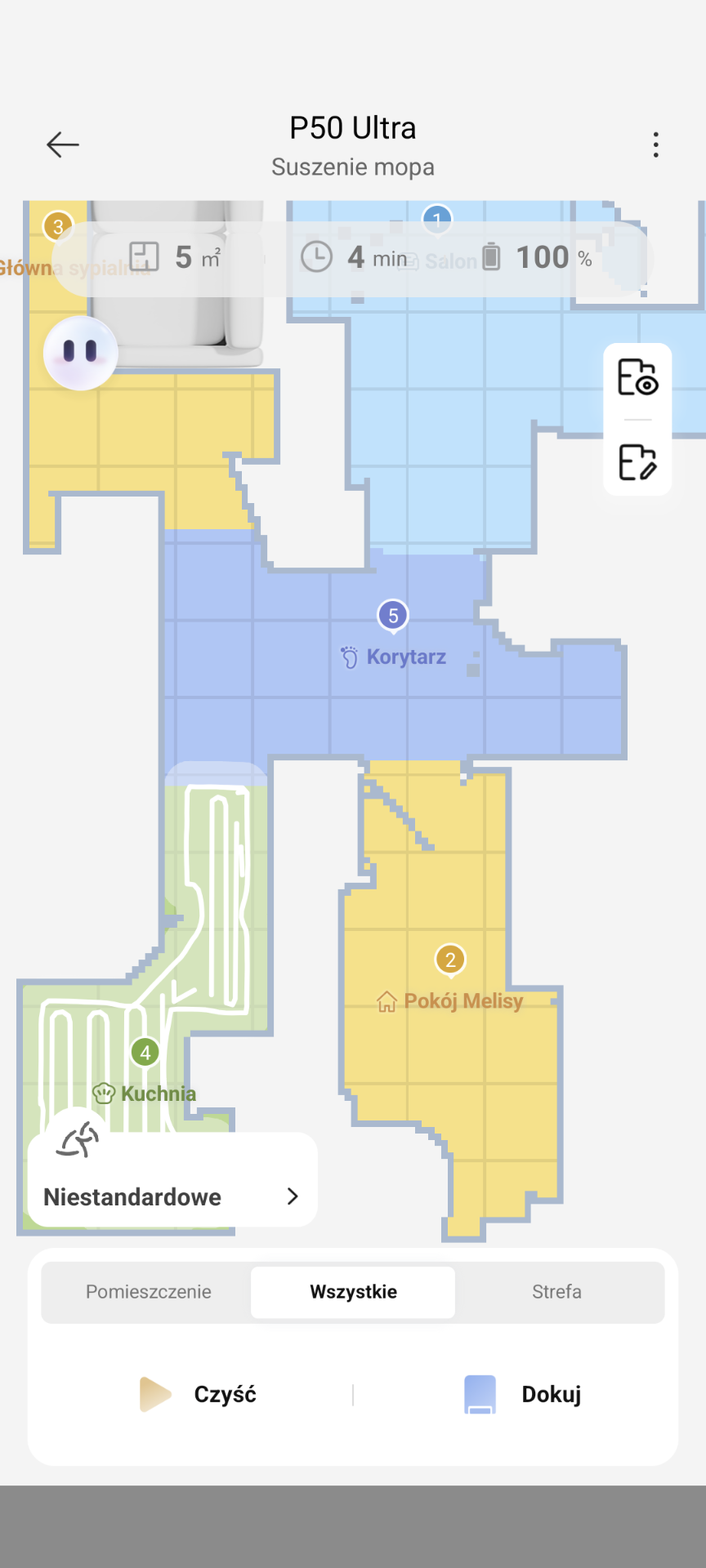 - wybierać konkretne pomieszczenia lub strefy do czyszczenia,