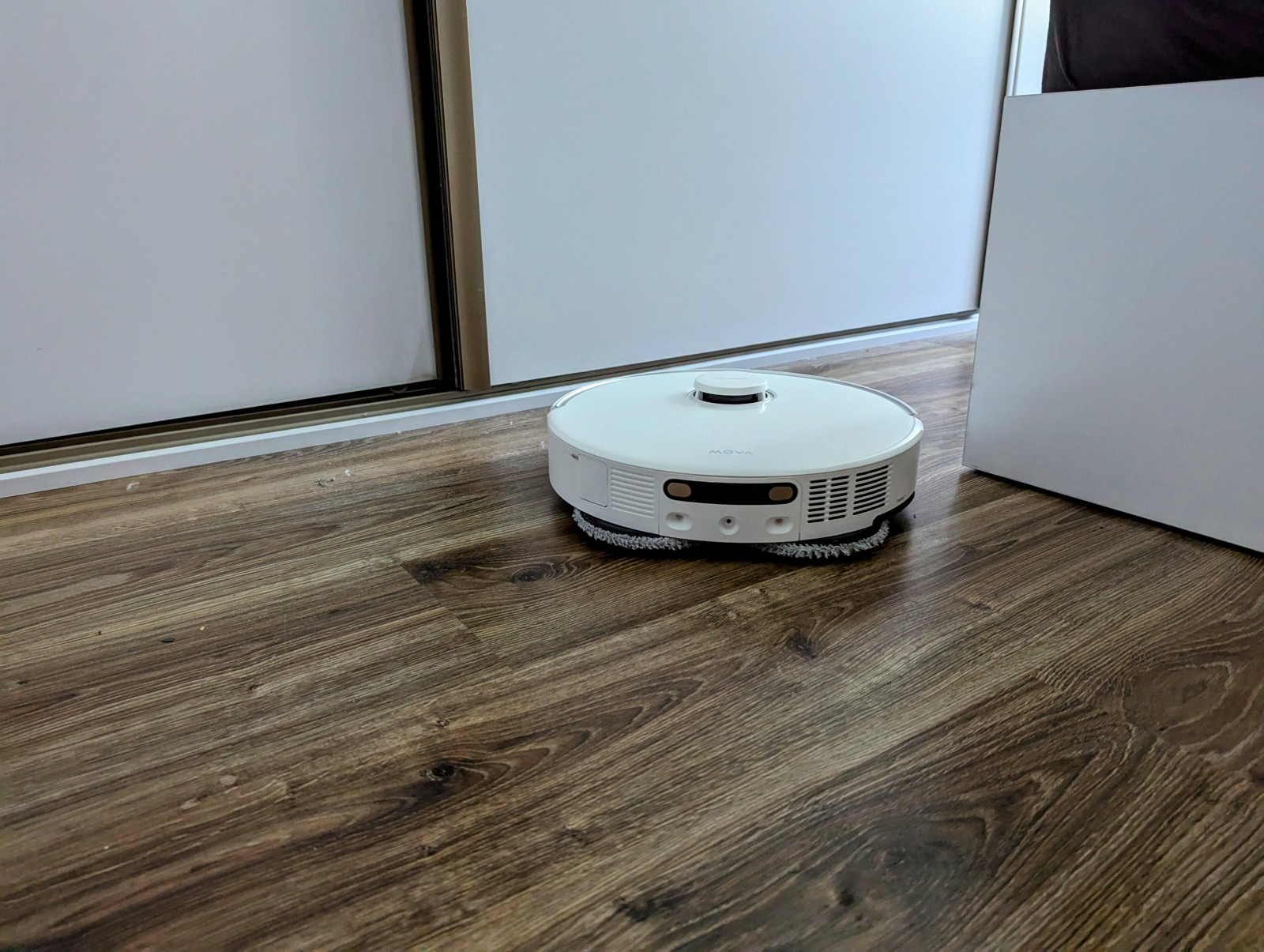 MOVA bez problemu radzi sobie w mieszkaniach o złożonym układzie – nawet na kilku poziomach. Przechodząc między pokojami, nie gubi się, nie wraca niepotrzebnie na już posprzątane obszary i nie „błąka się” po omacku, jak ma to miejsce w tańszych modelach bez zaawansowanego LIDAR-u. Ponadto robot pokonuje progi do 22 mm wysokości – co oznacza, że nie zatrzyma go ani dywan z grubym runem, ani listwa oddzielająca pomieszczenia. A wszystko to odbywa się płynnie i cicho, bez wrażenia, że urządzenie walczy z otoczeniem.
