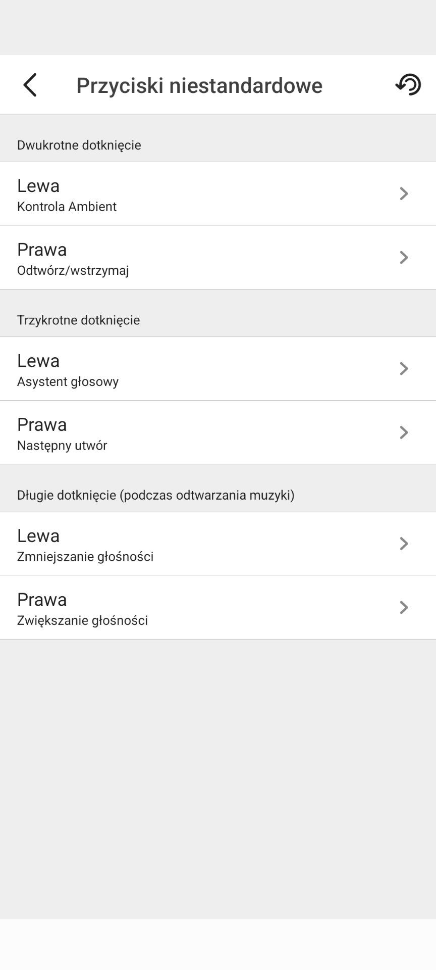 - Szybkie przełączanie trybu Ambient gestem (2× dotyk lewej słuchawki).