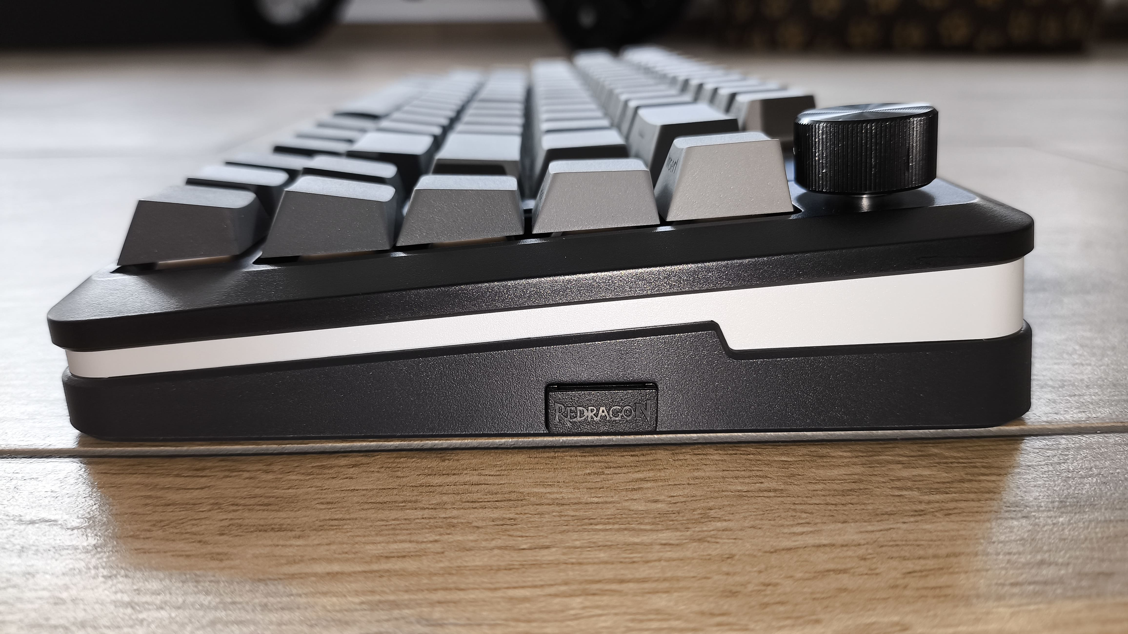 Fajnie, że Redragon postawił na gasket mount, co powinno poprawić komfort użytkowania i jakość akustyczną klawiatury. Niestety, w tym przypadku uszczelkowy montaż niewiele daje, ponieważ obudowa jest wypchana wygłuszeniem, co ogranicza elastyczność płytki i nie pozwala jej na pełną pracę na osi Y. Mimo to, sama koncepcja gasket mount jest poprawna i może mieć potencjał, jeśli producent zdecyduje się na mniejsze wygłuszenie.
