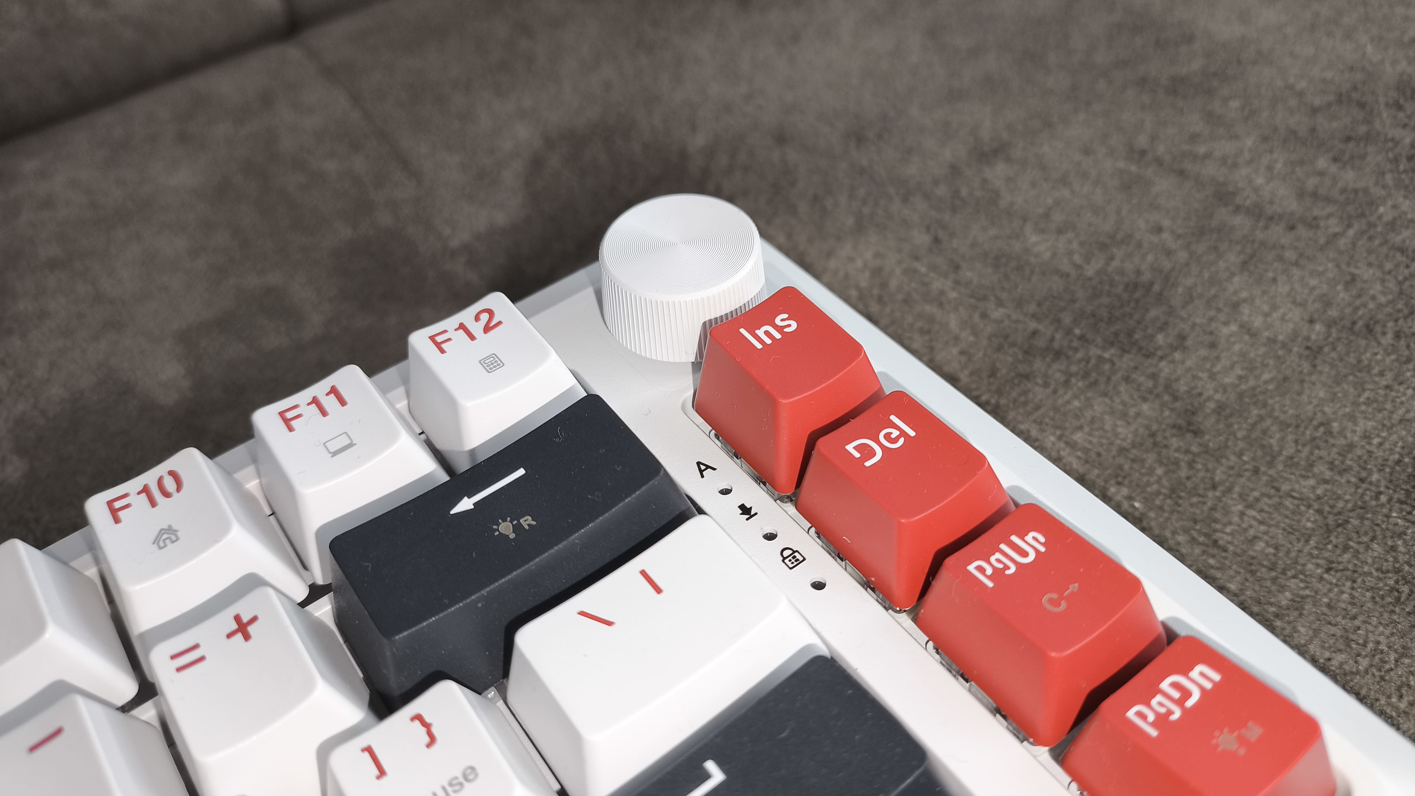 Warto zwrócić uwagę na ciekawy dobór kolorów w legendach klawiszy: białe oznaczenia alfanumeryczne współgrają z wspomnianymi już wyżej bordowymi znakami na klawiszach modyfikatorów, uzupełnione przez ciemnoszare detale akcentujące. Takie rozwiązanie nie tylko podkreśla estetykę, ale też ułatwia orientację wizualną podczas korzystania z klawiatury.