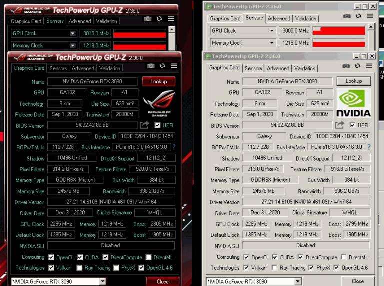 Zarówno overclocker OGS z ekipy HwBox Hellas OC Team, jak i Rauf z Alza OC podkręcili swoje egzemplarze RTX 3090 HOF do 3 GHz. Jednak podczas testów zegar spadał do poziomu i tak imponujących 2,8 GHz, dzięki czemu karty osiągnęły aż 16 rekordów z udziałem jednej karty graficznej w szeregu testów.