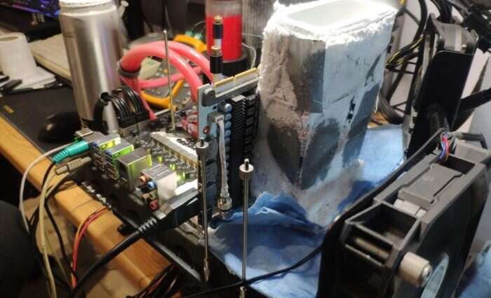 Oczywiście w grę weszło chłodzenie ciekłym azotem, które trzymało temperatury w ryzach, a te musiały być wręcz ogromne, kiedy taki potworek zaczynał działać. Co ważne, nie jest to z pewnością koniec rekordów dla RTX 3090 HOF, jako że przed tą kartą są jeszcze całe miesiące prac najlepszych overclockerów.