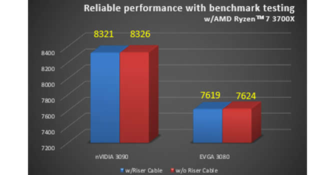 Cały proces wpięcia risera PCIe 4.0 jest prosty – złącze męskie wpinamy do płyty głównej, a złącze żeńskie instalujemy jakoś w obudowie i w nie wpinamy kartę graficzną. Proste? Proste, a dzięki wysokiej jakości materiałów możemy być pewni, że wydajność spadnie tylko o promile, co potwierdzają jak na razie tylko wewnętrzne testy producenta, które wzięły też na celownik straty na poziomie elektronicznym.